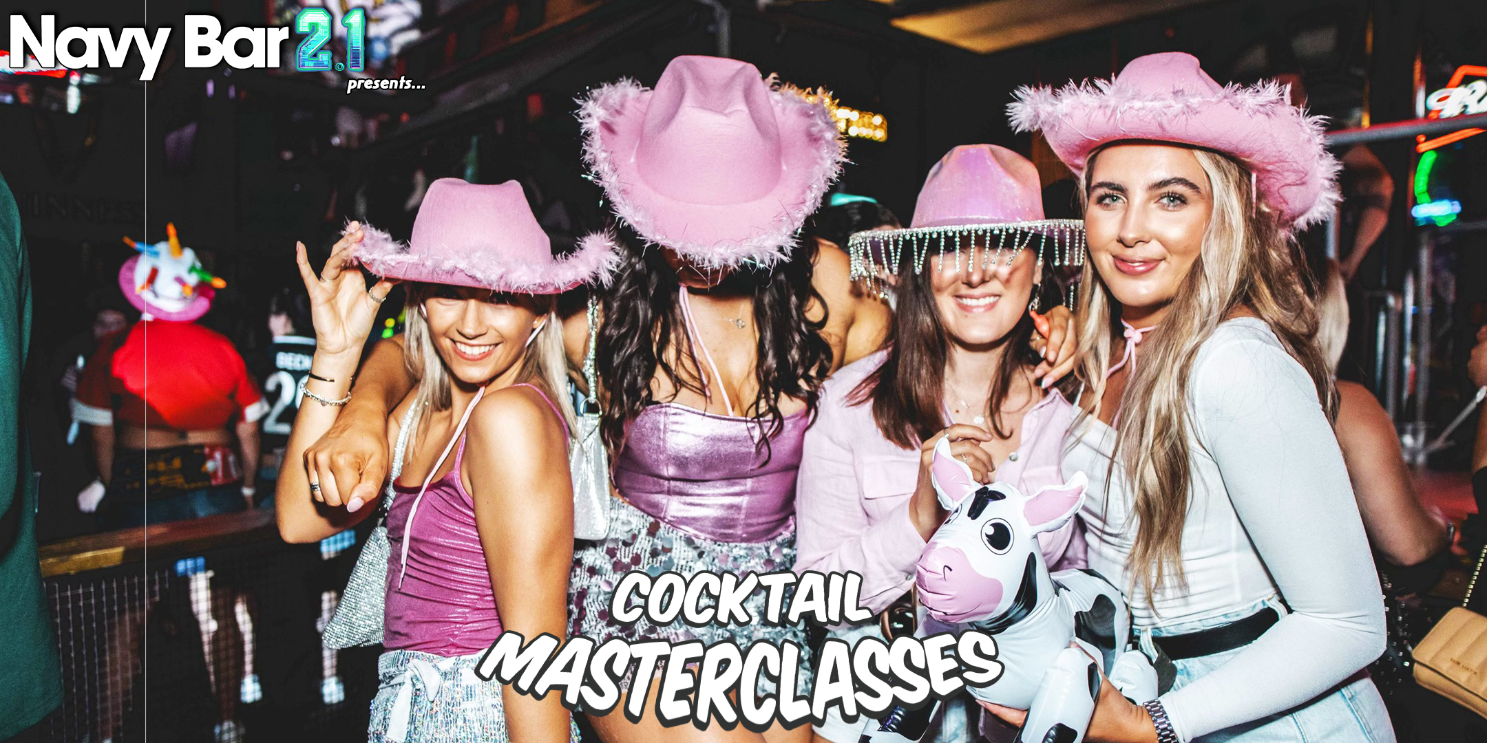 IMPORTANT NOTICE: Whilst the class only lasts for one hour, we strongly recommend you allocate 2 to 3 hours minimum for this extraordinary event. Upon arrival our gorgeous Hostess will meet with the Hen (Or Birthday celebrant) and give you a good rundown of how the class is going to go. There may be some preparation time needed to get the bar looking amazing, during this time the group is welcome to mingle around the bar area and get 2 for the price of 1 on all signature house cocktails!! After the class, you get the opportunity to enjoy various themed DJ events happening at Navy Bar 2.1 as well as being able to visit our 2 other sister venues: DYSCO and BENIDORM BAR which are allocated on the other floors of the building. We would advise that the group arrives 1 hour before the class and allow 1 hour after it ends so that you can enjoy the full experience, utilise the nightclub area & get amazing photos whilst dancing on our dance podium as well as our CHURCH CHAPEL themed DJ booth!!