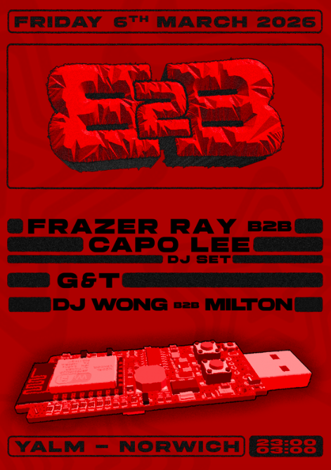 Support comes from the rising female DJ duo G&T, as well as a special B2B from Norwich based selectors DJ Wong and Milton.