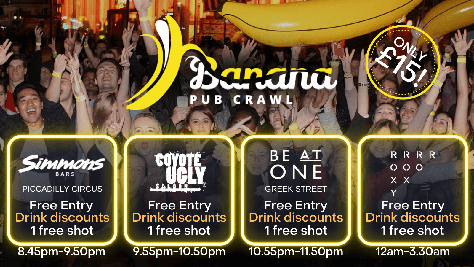 Banana Pub Crawl is Central London's best clubbing tour (voted #1 on TripAdvisor).