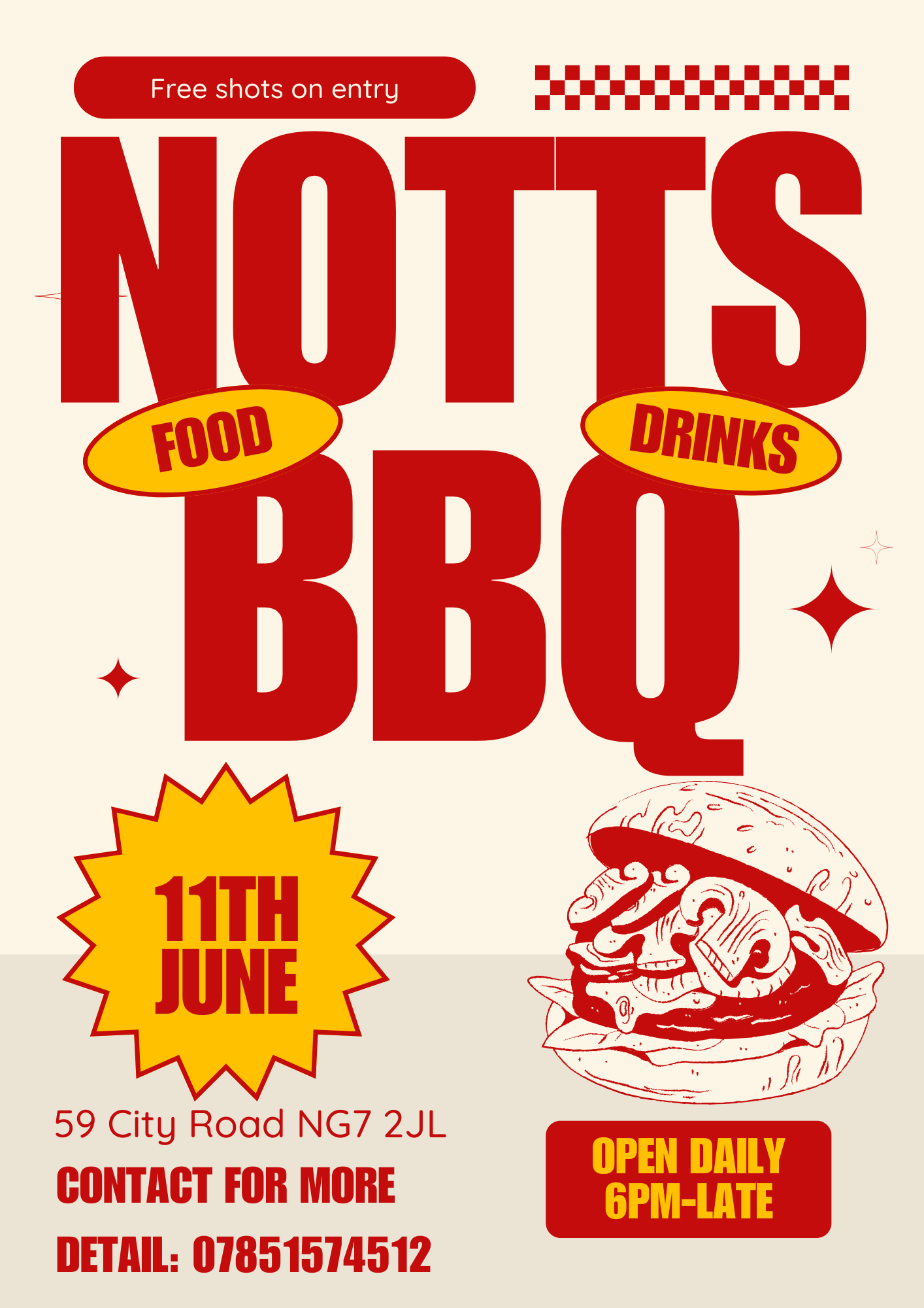 Nottingham! The ultimate End of Year Celebration is here β and itβs one you definitely donβt want to miss. Join us on Tuesday 11th June for Notts BBQ, a night packed with delicious food, ice-cold drinks, and non-stop vibes. Whether you're celebrating the end of exams or just want to start summer right, this is your night to go big.