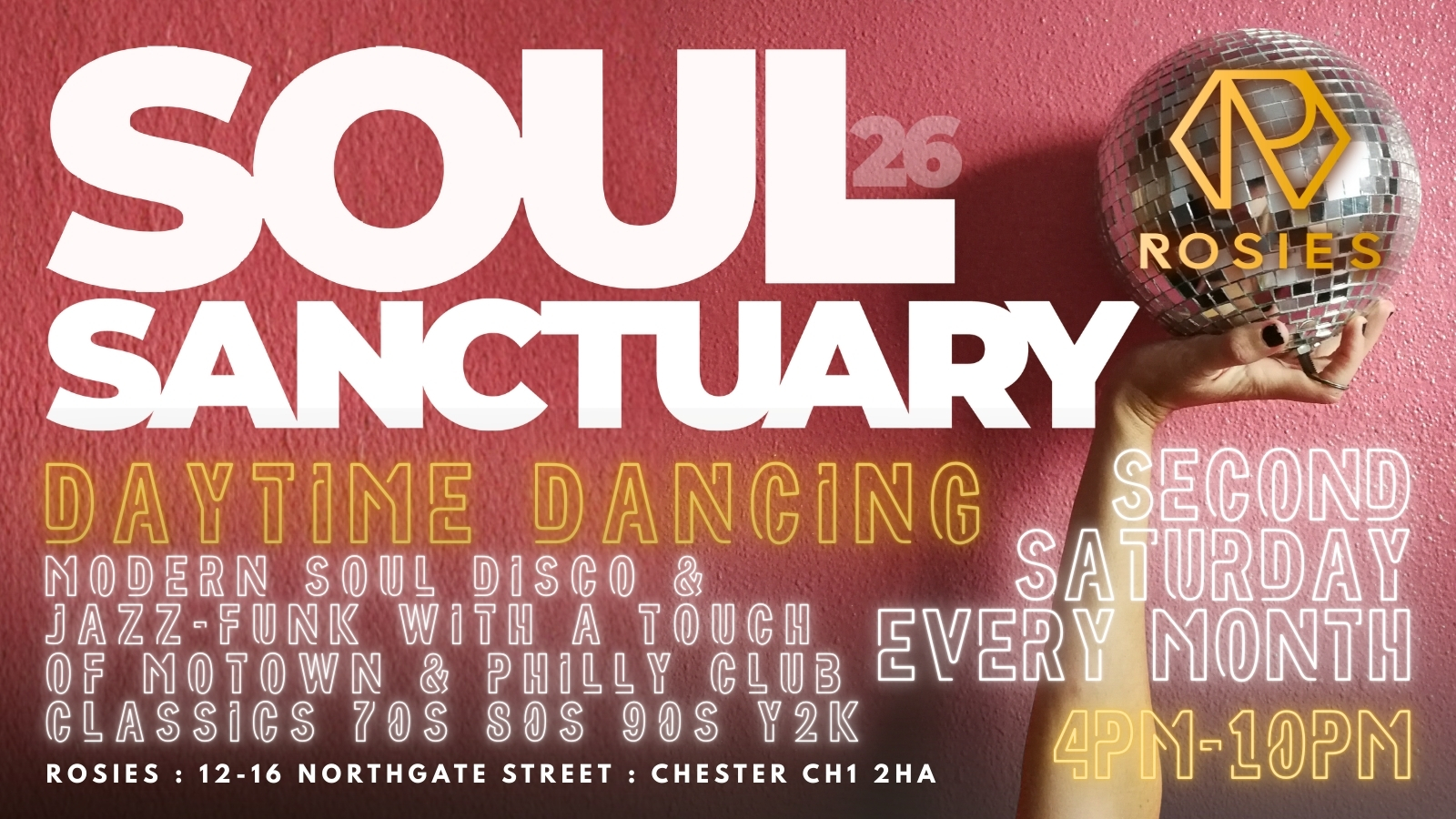 Get ready to groove to the smooth sounds of modern soul, classic soul, rare groove, and two-step at this daytime club event. DJs Ray Rose and Roger Williams will be spinning the soulful tunes that will have you dancing all day long! It's going to be an incredible soul sanctuary experience!
