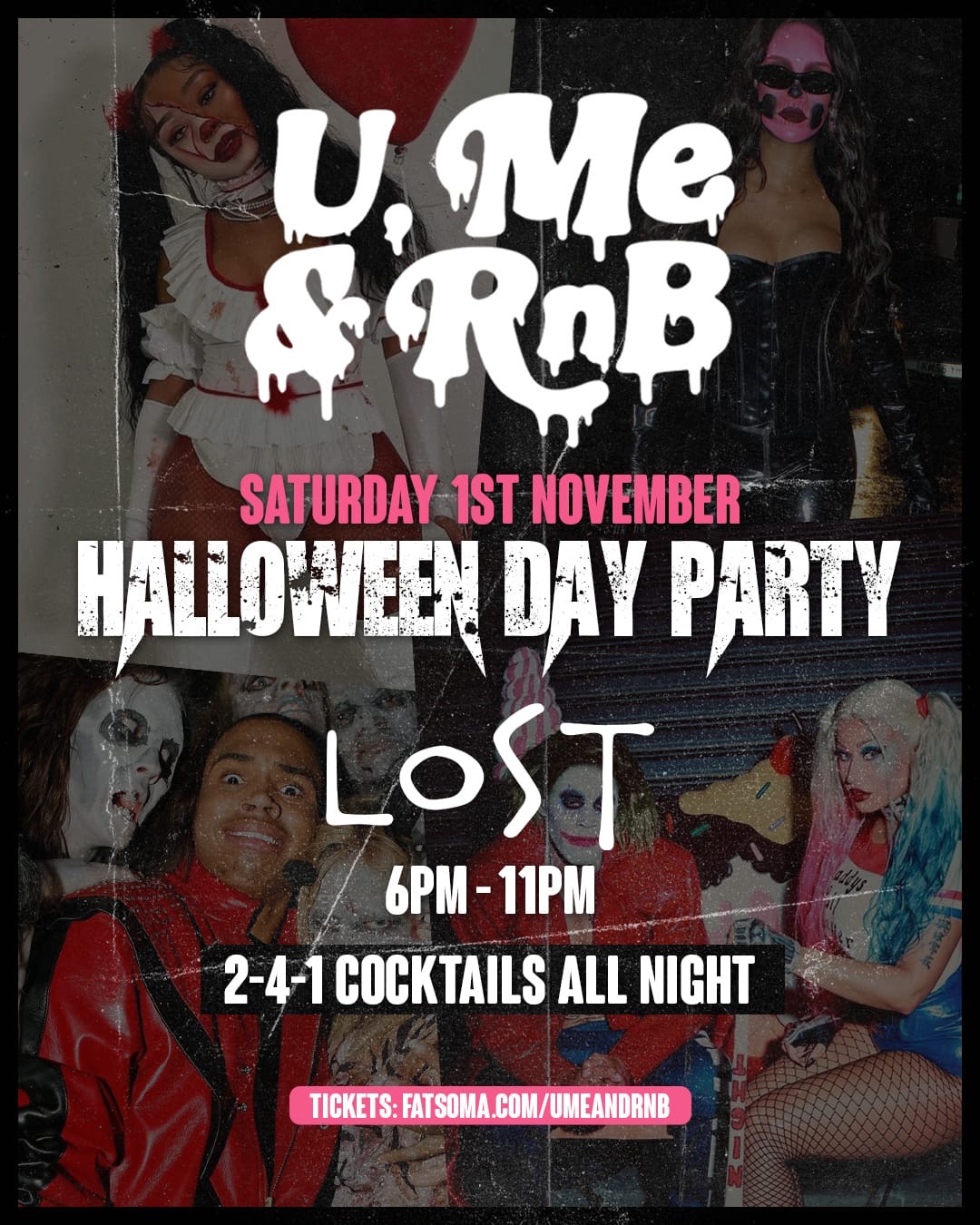 U ME & RnB takes over lost Saturdays early doors ! For a Halloween special 🎃