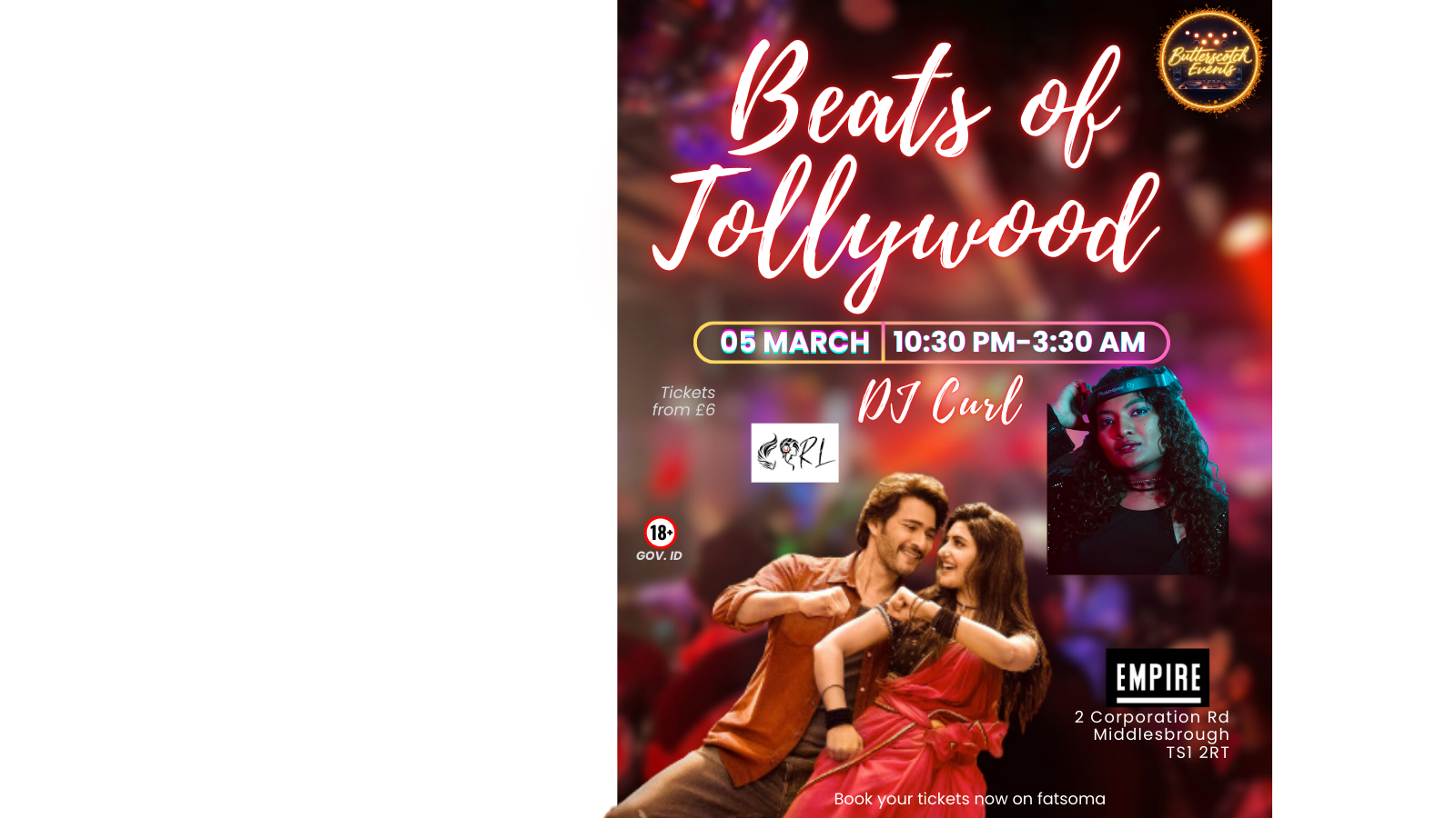 🪩💃The most exciting pure tollywood night is happening in Middlesbrough for the first time. Do join us to sing and dance-away with Dj Curl for a night of unforgettable moments, electrifying music, and a sizzling atmosphere.😍