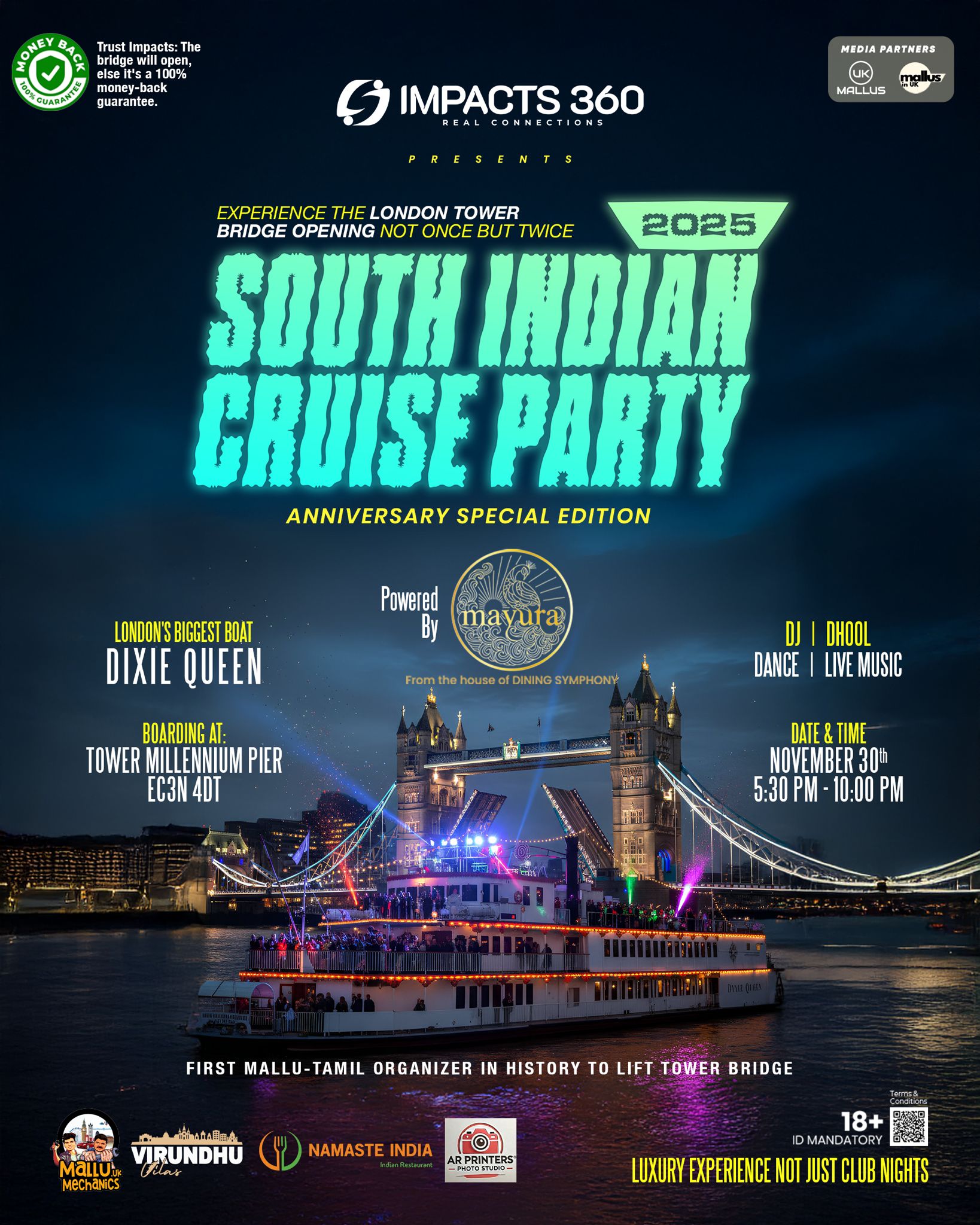 • First Tamil–Mallu organised cruise to lift the London Tower Bridge