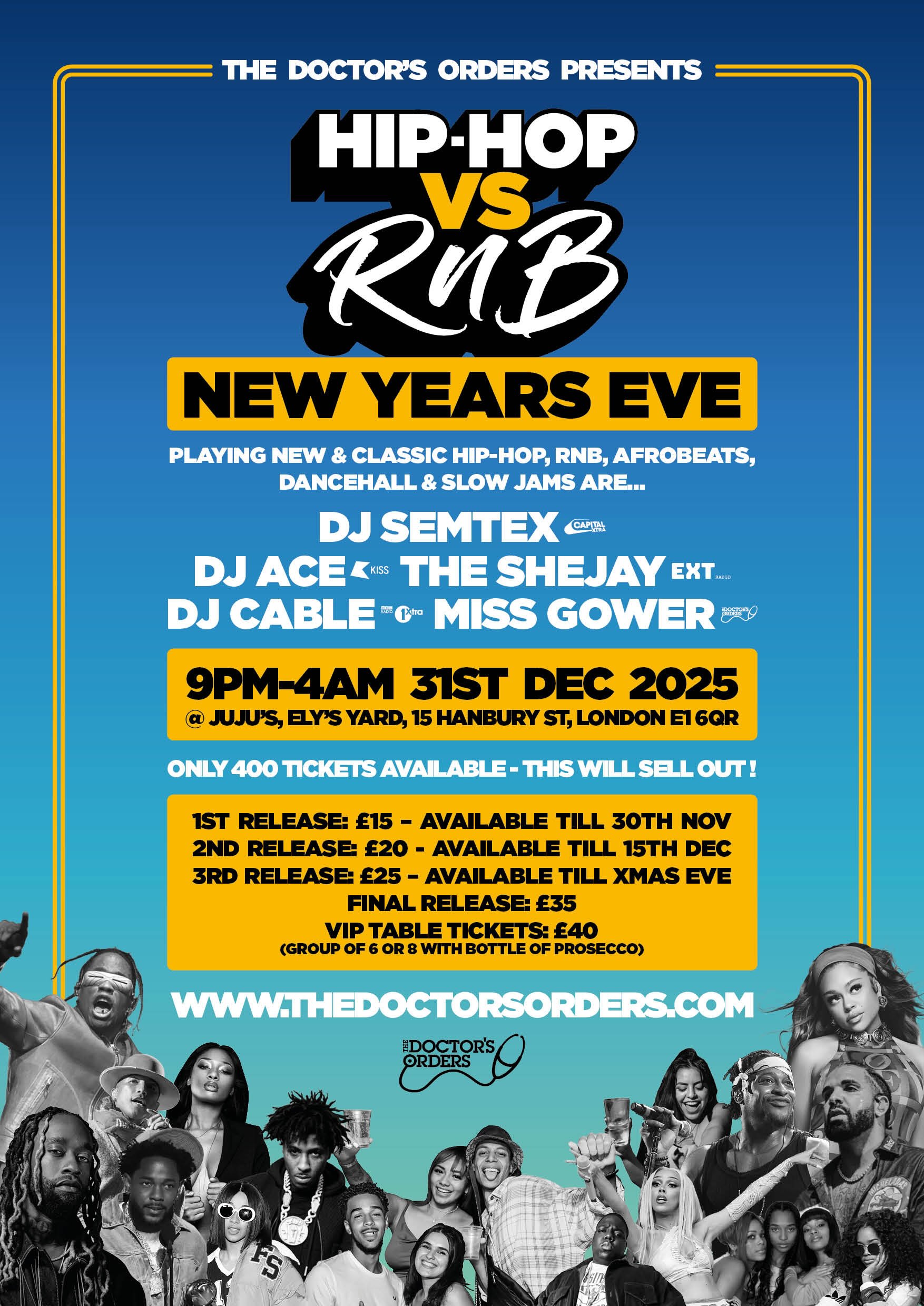 Having sold out the last 9 years in a row we are looking to make it a decade ensuring Hip-Hop vs RnB NYE remains London’s best NYE party with the biggest line up of the UK’s names in Rap & RnB DJs anywhere in the country!