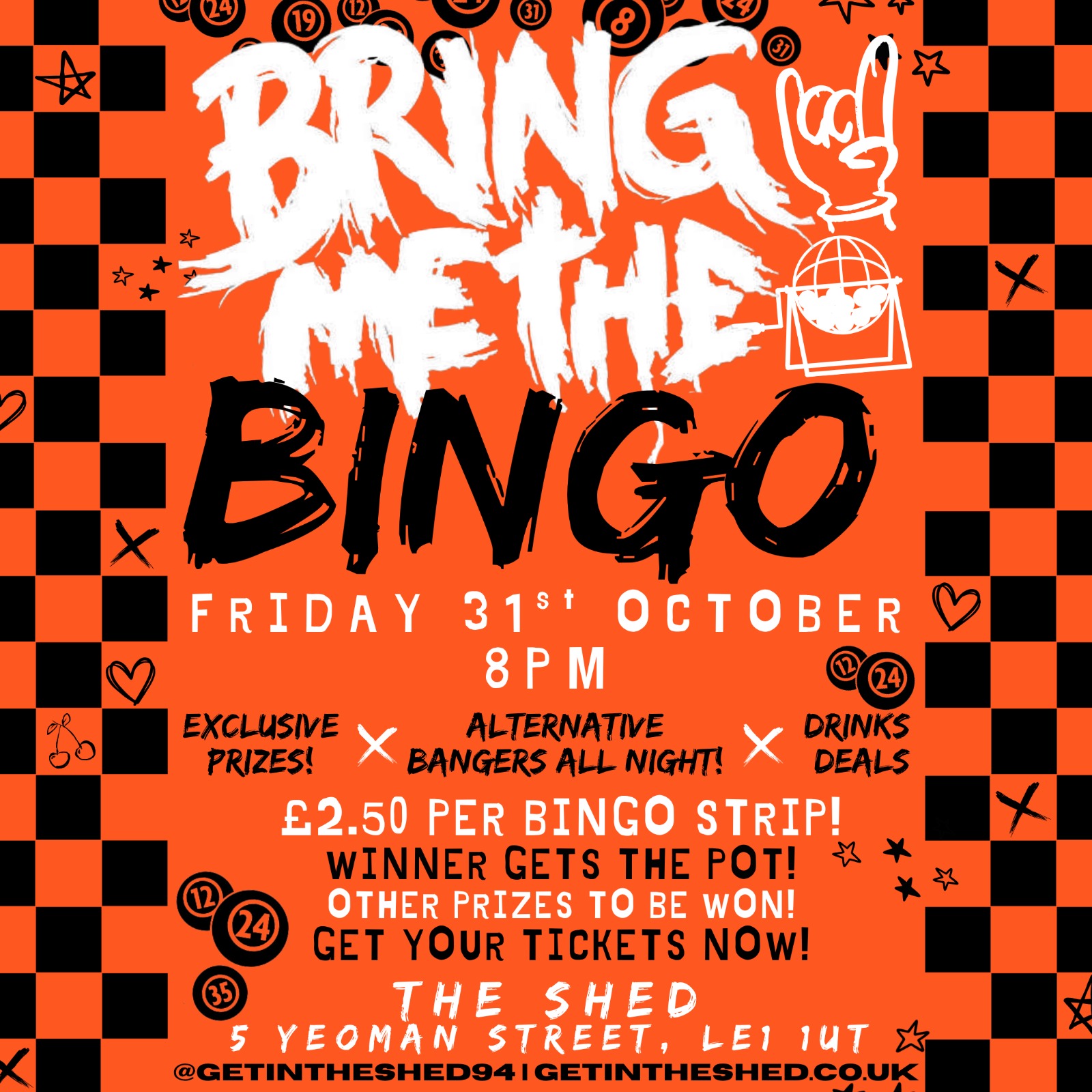 Get ready for Leicester’s most chaotic bingo night! Join us at The Shed for Bring Me The Bingo — an alternative twist on the classic game, packed with alt anthems, exclusive prizes, and plenty of surprises all night long.