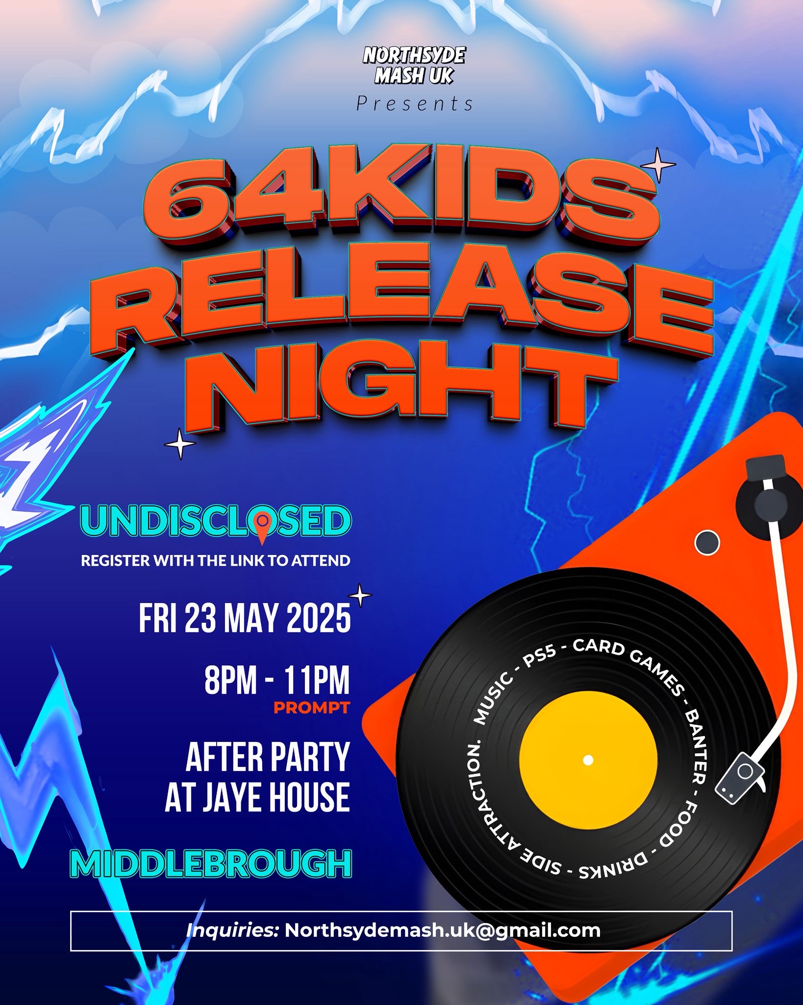 This event is tagged (64kids) for new track release session for (County). With other activities;