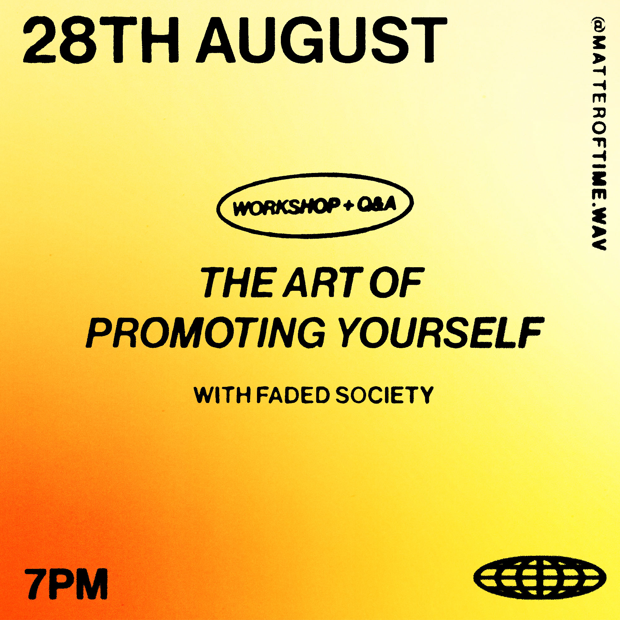 Cat aka Faded Society is a DJ, event producer and promoter, expert marketer and a leader nurturing grassroots talents in London. In this workshop, she'll talk through simple steps on how to promote yourself using resources already available to you. The aim is to inspire you to take actions today and curb that procrastination!
