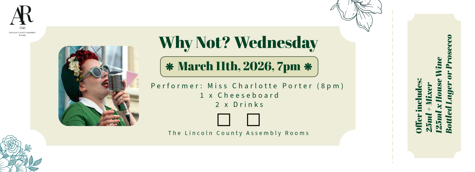Join us at the Lincoln County Assembly Rooms on Wednesday 11th March from 7pm