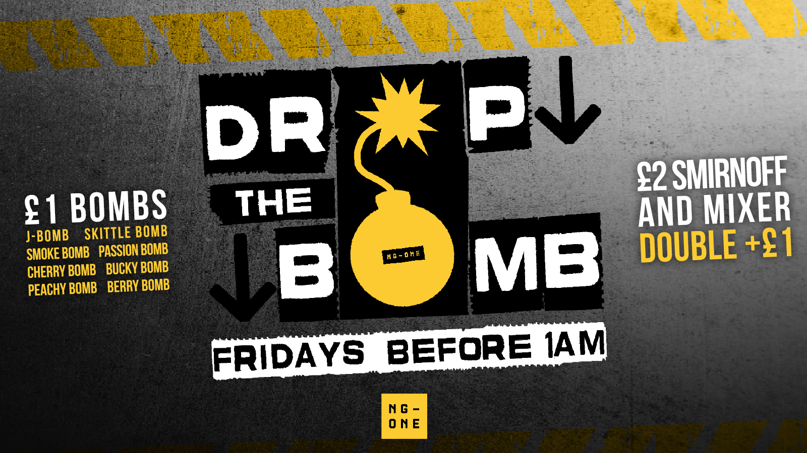 💣£1 bomb menu and £2 Smirnoff vodka mixers (before 1am)