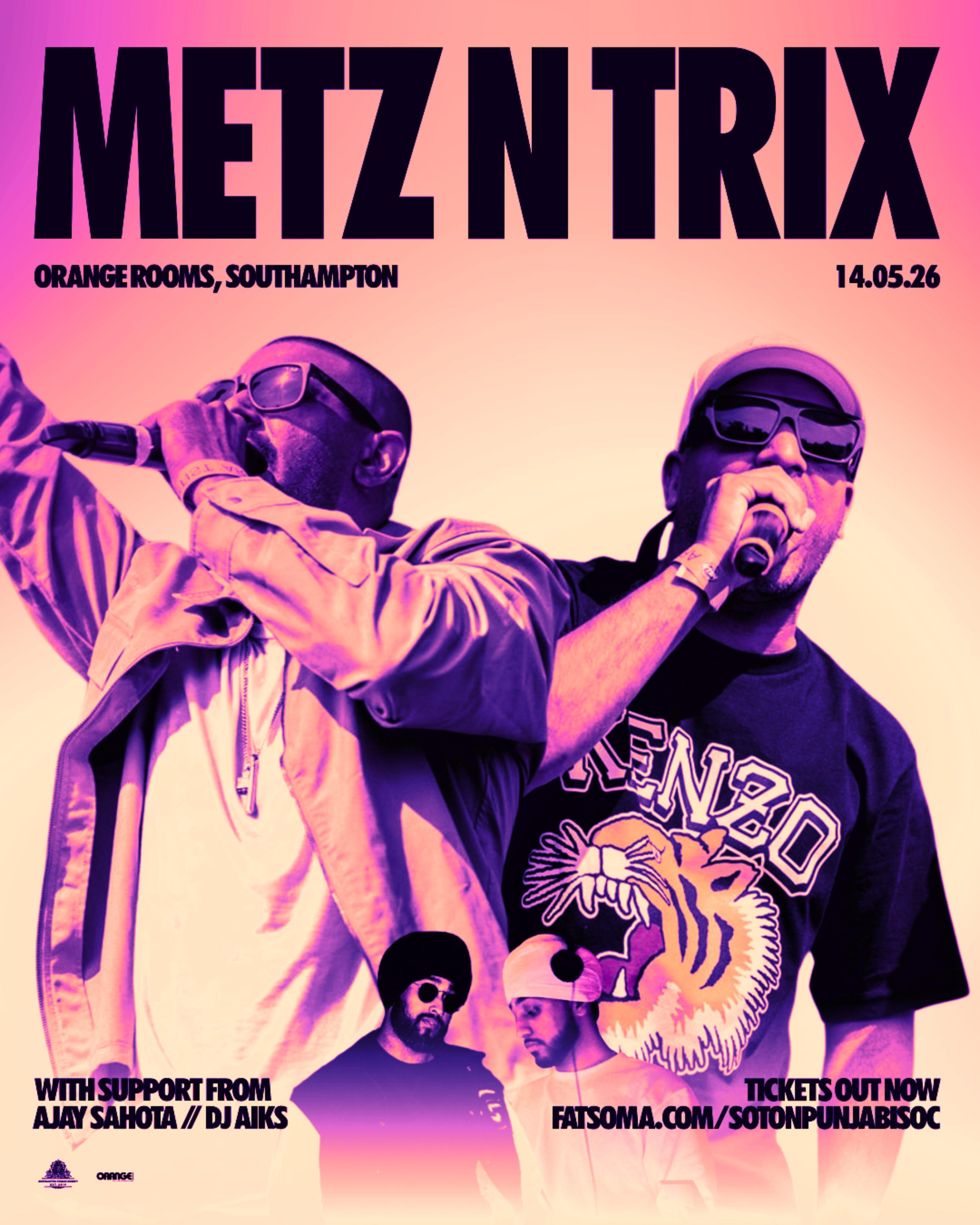 For the first time in over 20 years, pioneers of the Punjabi UK Garage movement, and the hitmakers behind "Aja Mahi", Metz N Trix, are coming to the South Coast! Known for their classic bangers, and high energetic sets, the duo have built a reputation for bringing authentic Punjabi flavour into the UK underground scene, marking them a must-see act for lovers of both Garage, and Desi music.