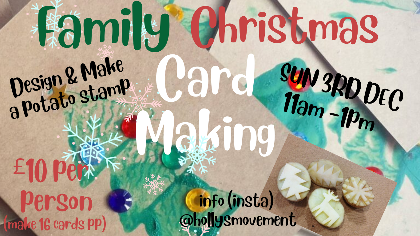 Join Holly's Movement for a festive family gathering at our Christmas Card Making event! Come together to create personalised Christmas cards for your loved ones. Get creative with designs and craft a unique potato stamp with paint, jewels, pompoms, snow spray, and glitter to make eight one-of-a-kind cards. All of this accompanied by your favourite Christmas soundtrack. Let's get into the holiday spirit and craft some wholesome family memories together!