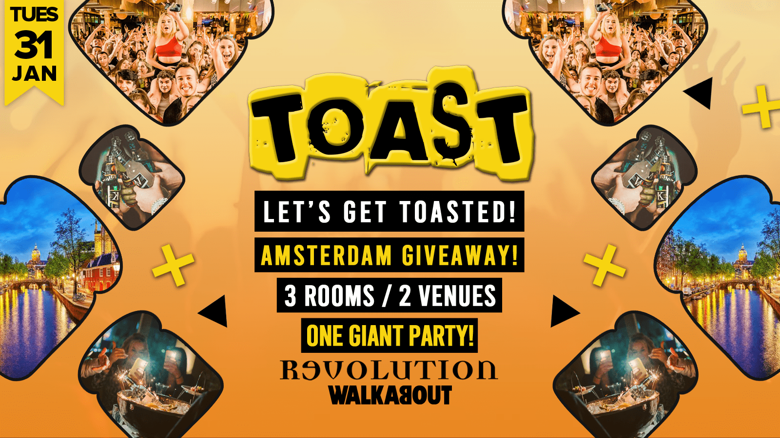 We're back at Revolution and Walkabout this Tuesday where one lucky person will win a trip for two to AMSTERDAM! All you have to do is be one of the first 200 people through the door at Revolution 😮