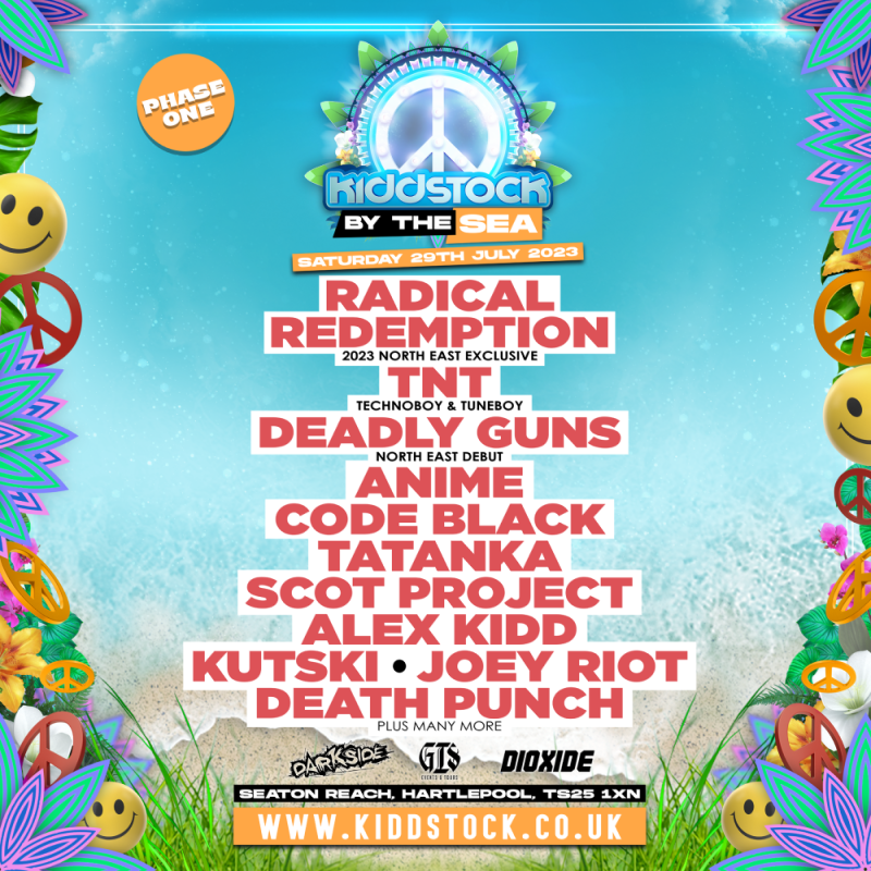 The phase one line up has now dropped… Headliner Radical Redemption will be making his Kiddstock debut with a 2023 North East Exclusive. With his knife sharp synths and immense rhythmic sections this is sure to be an epic set to remember.