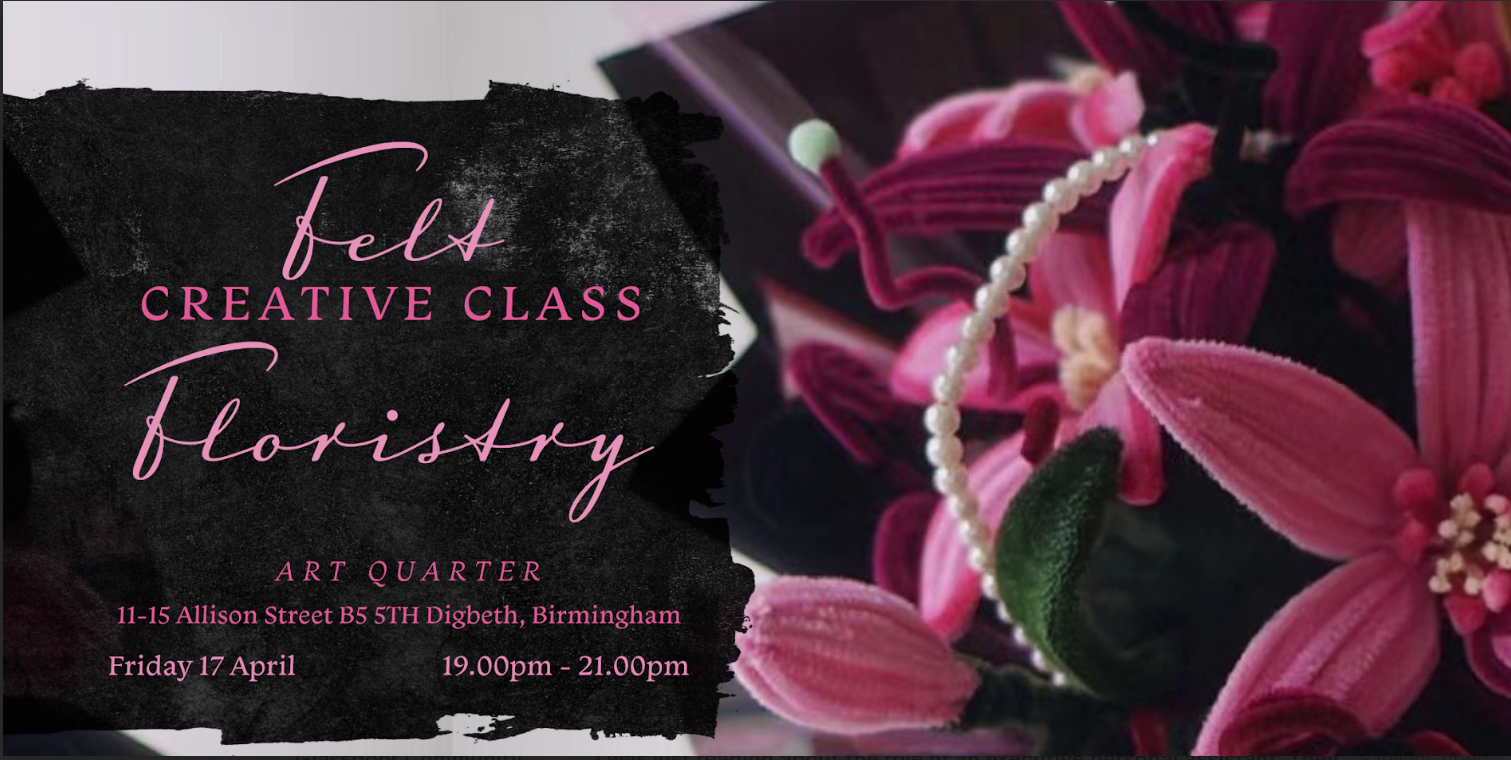 Join us for a relaxing and creative Felt Wire Floristry Workshop at Art Quarter in Digbeth. This beginner-friendly class is perfect for anyone looking to unwind, learn a new skill, and create something beautiful by hand.