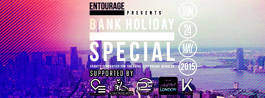 The Entourage Presents: The Bank Holiday Special! Charity Fundraiser for the Nepal Earthquake Disaster.
