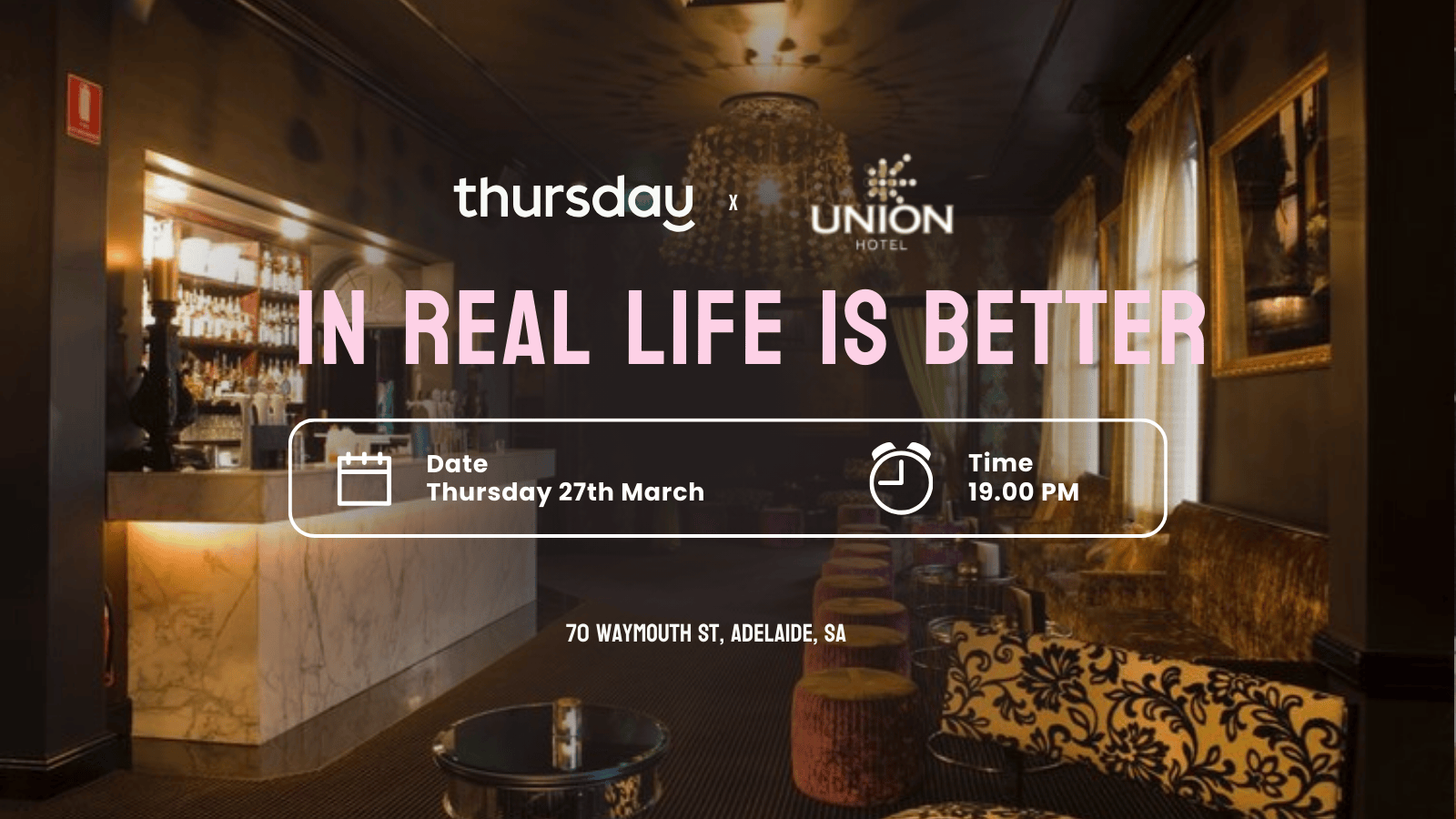Adelaide's next Thursday event is here and we have an amazing venue for you!!! The Union Hotel in the CBD.