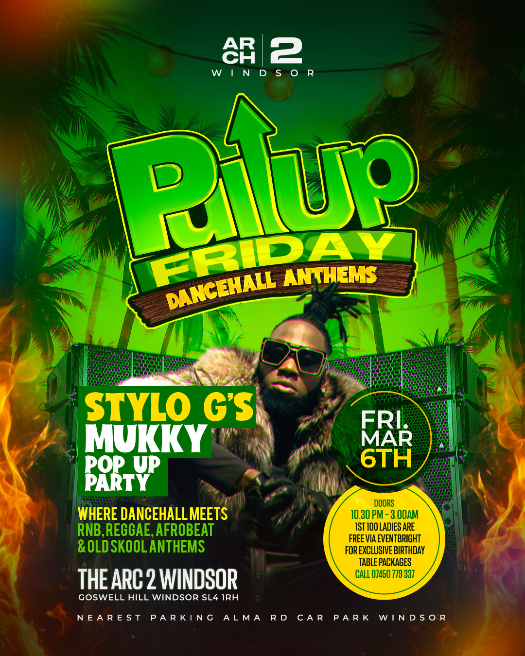 Pull Up Friday's London Biggest Dancehall Bashment party lands at Arch 2 Windsor Friday 6th March 1st 100 Ladies free Tickets