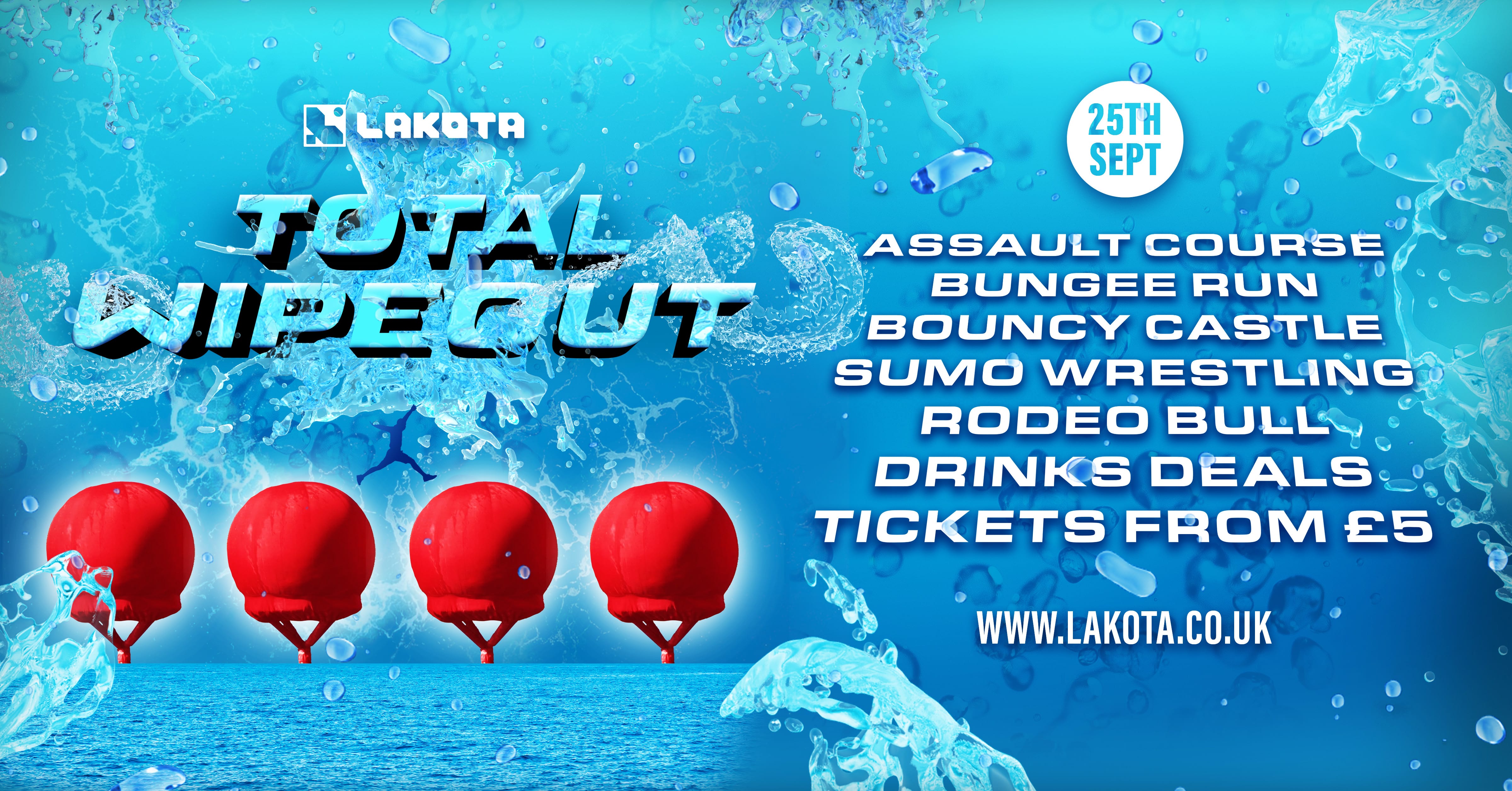 On Monday 25th September, Lakota will be transformed into a childhood dream for many, offering you a chance at our very own Total Wipeout obstacle course.