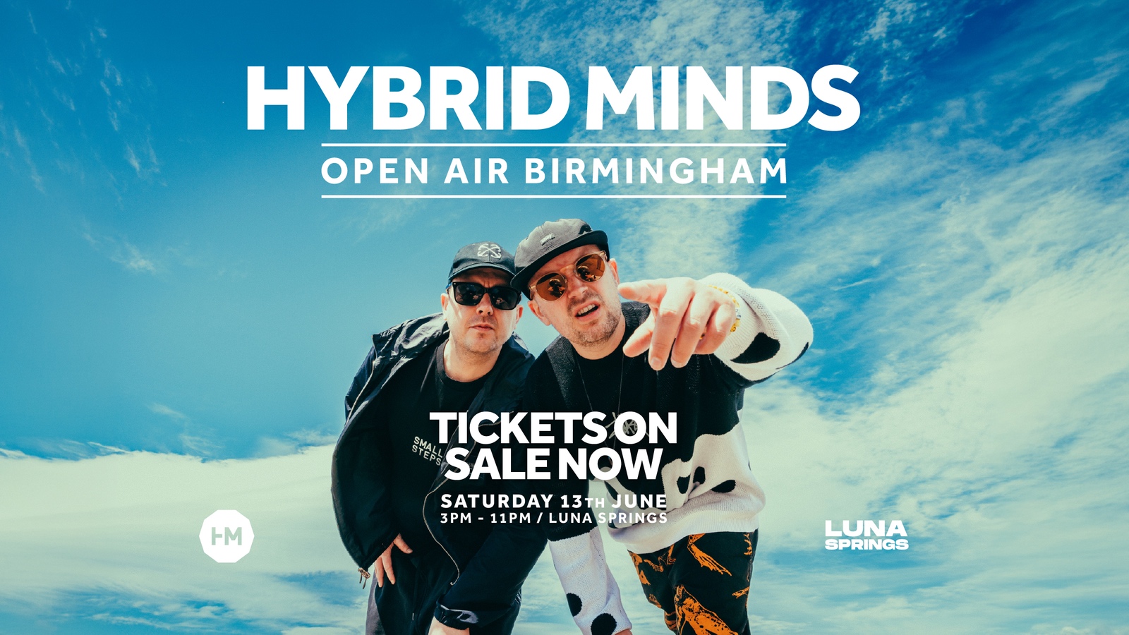 TICKETS SELLING FAST 🚨HYBRID MINDS ❤️SPECIAL OPEN AIR SHOW 🙌🏻LUNA SPRINGS BIRMINGAMSAT 13TH JUNE · 3PM - 11PMFULL LINE UP + MUCH MORE TBA!