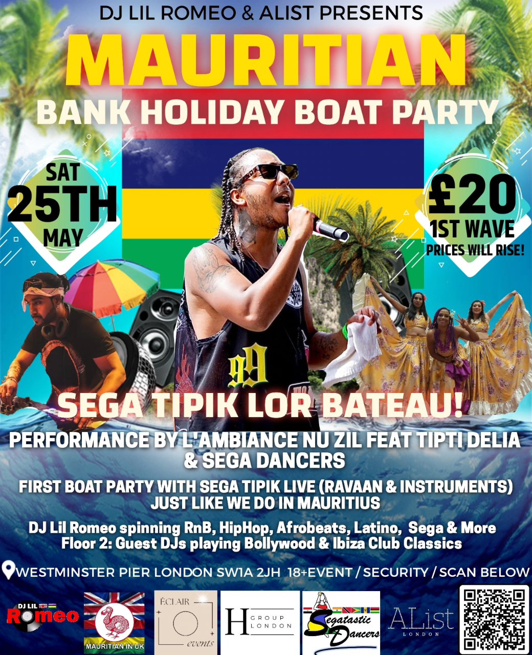 We will have Bily Gane @bilygane_officiel joining us onboard + Sega Tipik on the boat by L'ambiance Nu Zil feat @tiptideliaofficial_ for the very first time on a London Boat Party just like we do in Mauritius! Together with @segatasticdancers sega dancers! We are also going to be at the Afterparty at Beduin Bar til 4am