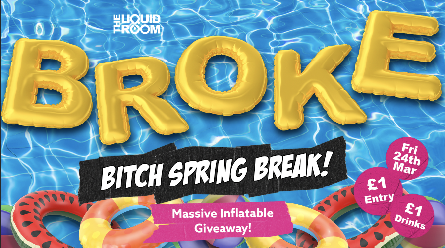 BROKE! FRIDAYS | EDINBURGH'S BIGGEST CLUB NIGHT | BROKE BITCH SPRING BREAK | £1 ENTRY | £1 DRINKS | THE LIQUID ROOM | FRIDAY 24TH MARCH