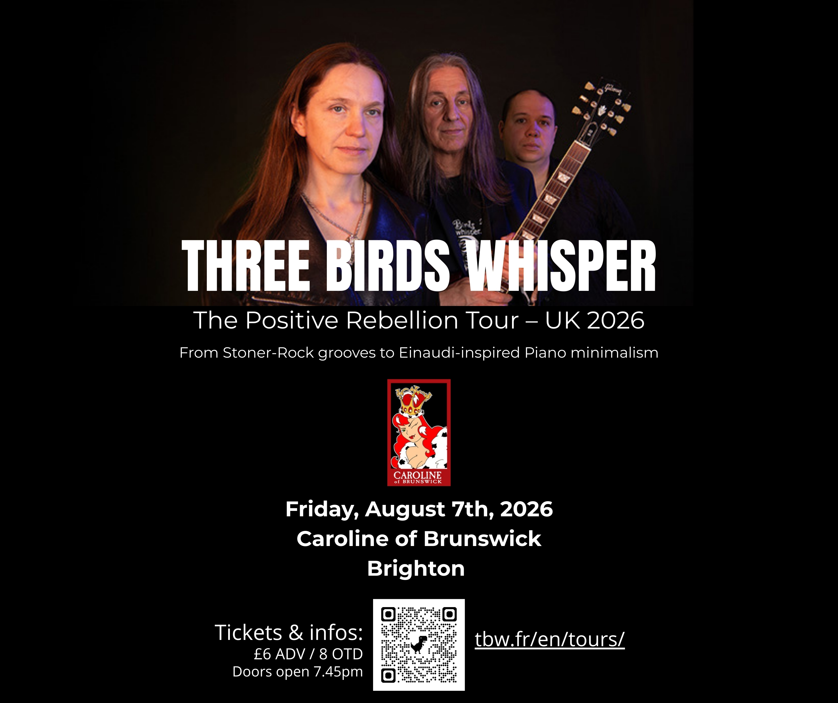 #ThreeBirdsWhisper #LiveMusicBrighton #BrightonGigs #StonerRock #AlternativeRock #UKTour2026 #PositiveRebellion