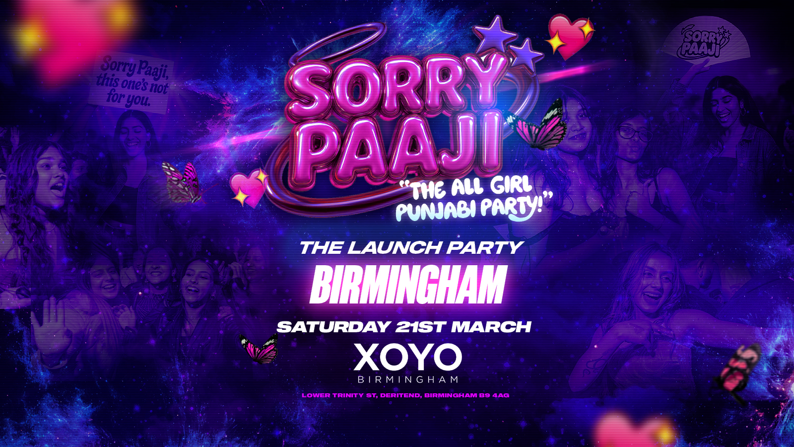 For the first time ever, Sorry Paaji lands in Birmingham with an exclusive all-girl Punjabi party, created as a safe, empowering space for Desi girls to come together, dance freely and own the night.