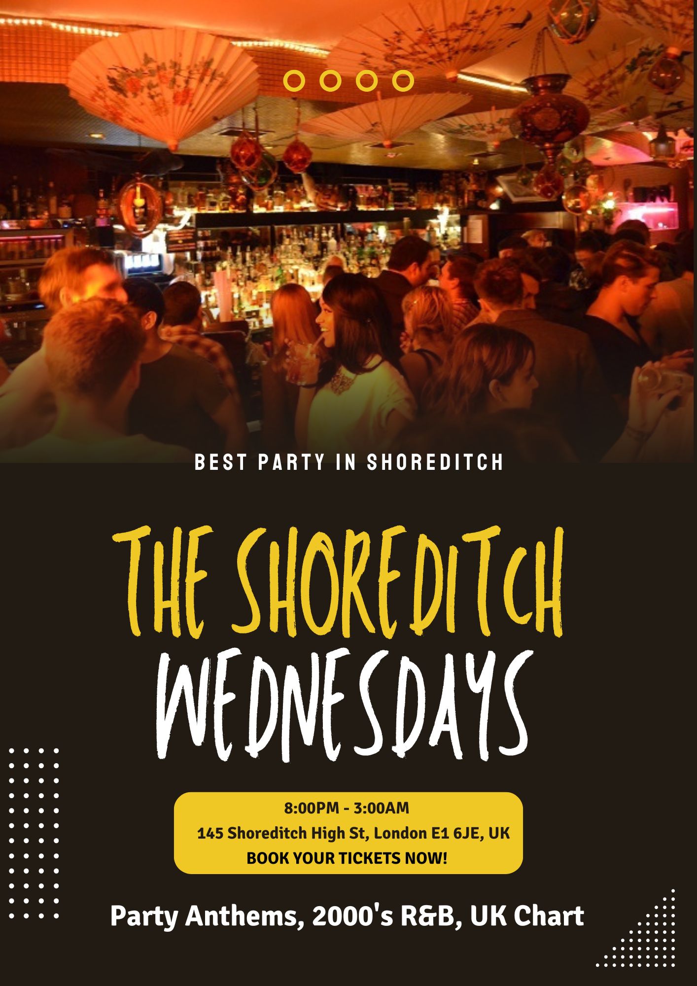Our expert mixologists will be shaking up a menu of refreshing and exotic cocktails, from classic piña coladas and cocktails to creative concoctions that will tantalise your taste buds. Sip your favorite drink while you dance the night away to the pulsating rhythms provided by our top-notch DJs. Whether you're looking for a tropical escape or just a fun night out with friends, The Shoreditch is the place for you!