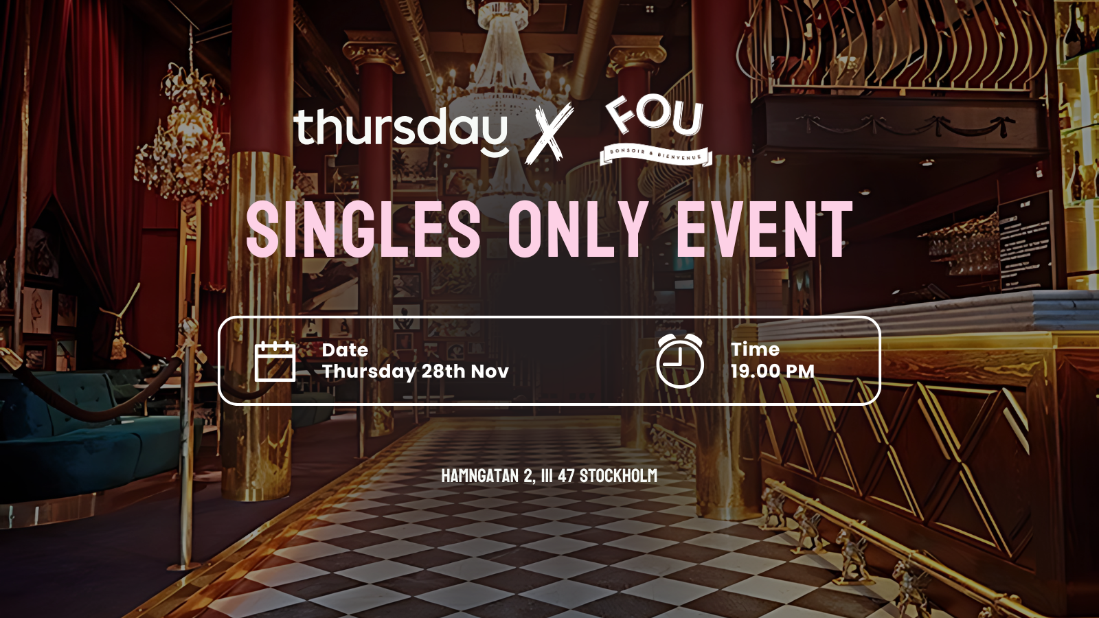 Hej again Stockholm, we've missed you this week! Can't wait to see you all again (and we have an amazing venue locked in, trust me)! We have multiple DJs playing and drinks deals between 7 - 8PM!