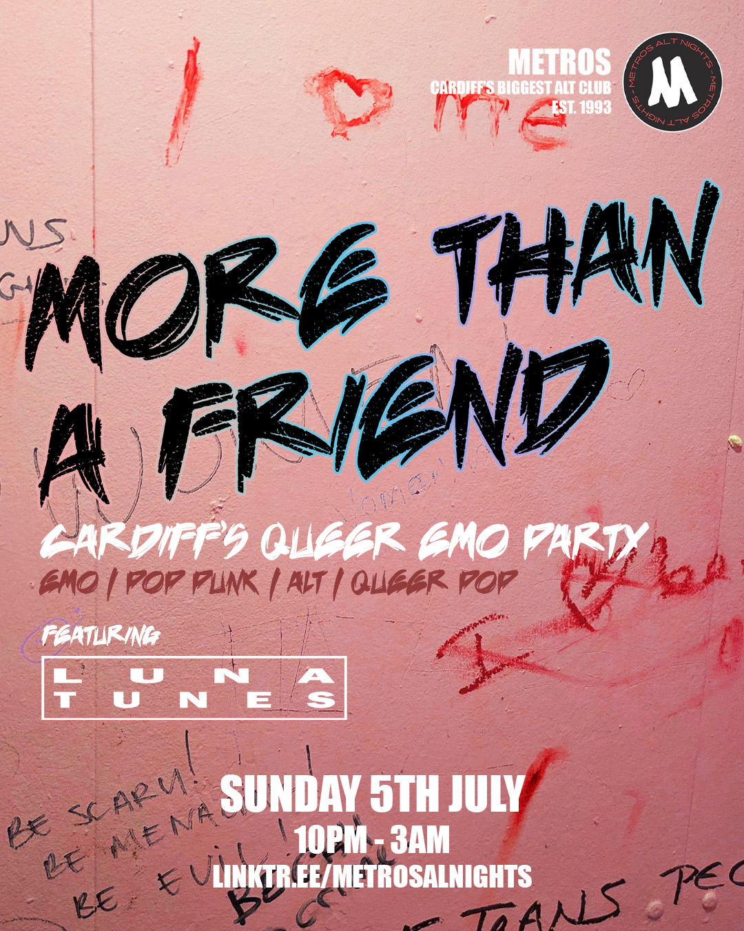 Introducing More Than A Friend our brand new queer orientated alt night! Led by DJ & queer icon Luna Tunes who spends her summers smashing festival stages expect a night of queer joy, huge tunes & plenty of dancing!