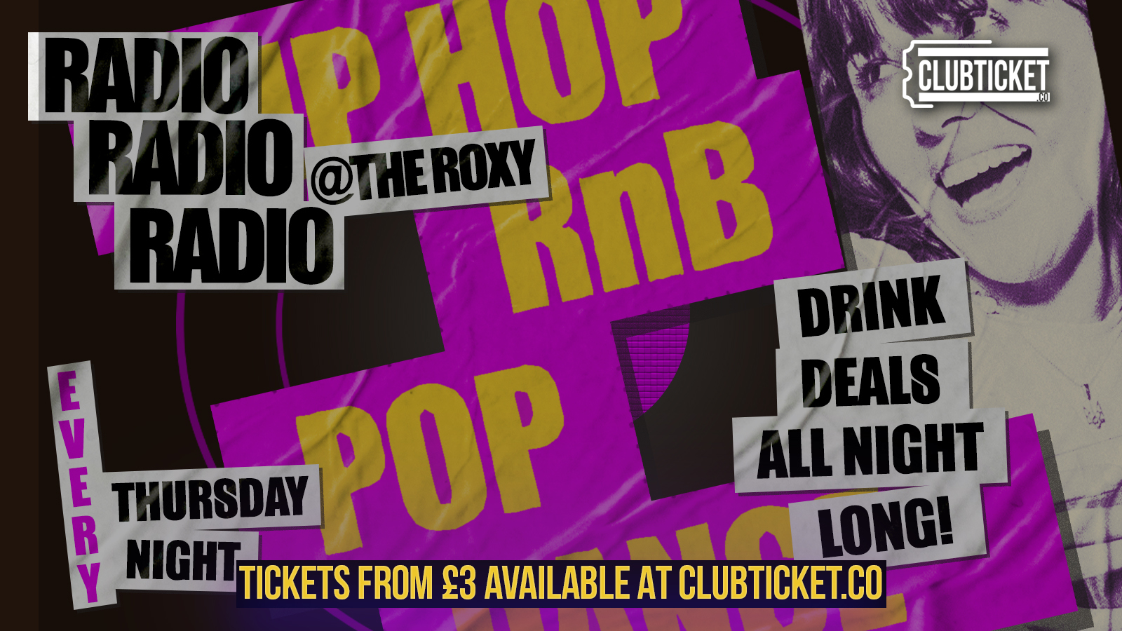 Join us every Thursday The Roxy for RADIO, — a high-energy mix of throwback anthems and the latest chart hits. From iconic pop sing-alongs to hip-hop bangers, dancefloor classics and reggaeton heat, if it’s a hit, it’s on RADIO.