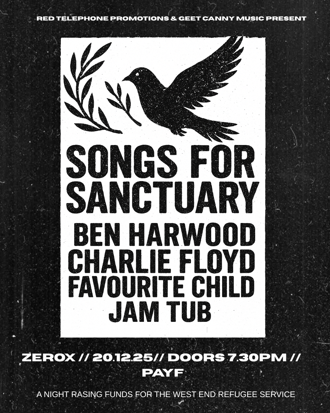 Red Telephone Promotions and Geet Canny Music present 'SONGS FOR SANCTUARY' at Zerox, Newcastle; a night raising funds for the West End Refugee Service (WERS).