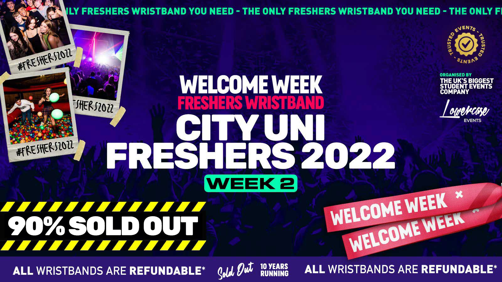 The Official London Freshers Wristband has SOLD OUT IN RECORD TIME every year for the last 10 years! Organised by the biggest & longest running student events company in London, Lowercase Events!