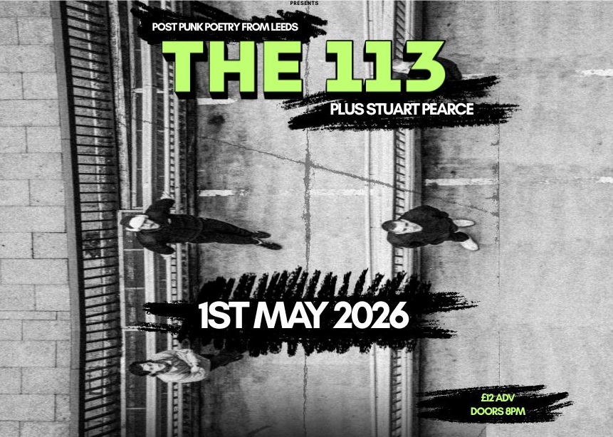 “Establishing themselves as a vital new voice from Leeds ever-evolving underground, The 113 evolve with it. Abrasive dystopian statements on surveillance, data harvesting and the quiet unease of modern digital life. The band describes its “new sound; desperate and panicked”, the group blisteringly hurtles forward with a compelling urgency, propelled by discordant guitars and thunderous offbeat rhythms.