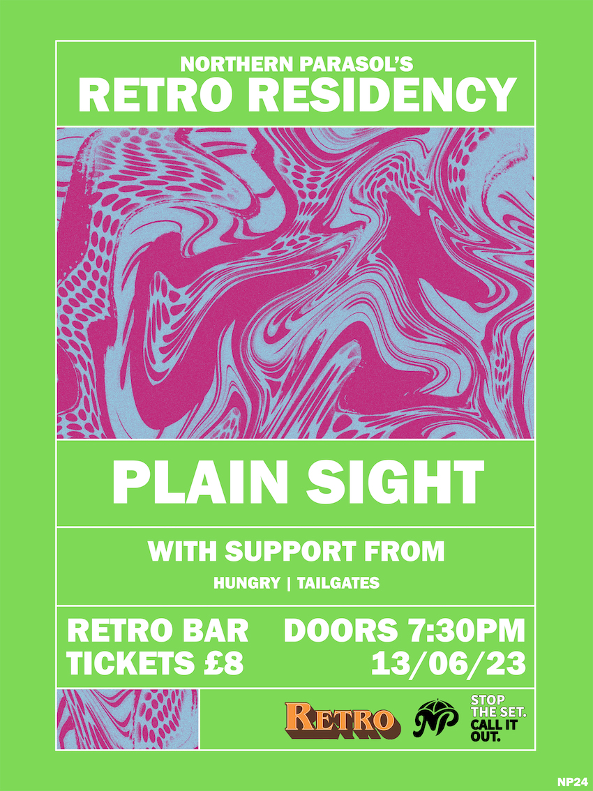 It is Northern Parasol's pleasure to announce the fifth event of our weekly residency at Retro! For over six weeks, Northern Parasol will be taking over (nearly) every Tuesday, showcasing the best, emerging talent. Headlining this show is Plain Sight, playing their second show with us in quick succession after their triumphant & eclectic set earlier in the year! Joining them on the bill is Hungry, returning with all the energy they had in December and some of the most catchy tunes on the scene at the moment. Finally we have Tailgates, playing with us for the first time, bringing their classic hard rock sound to open the show with a bang. This is the fifth in a series of weekly shows Northern Parasol are curating at Retro, so keep an eye out for more!