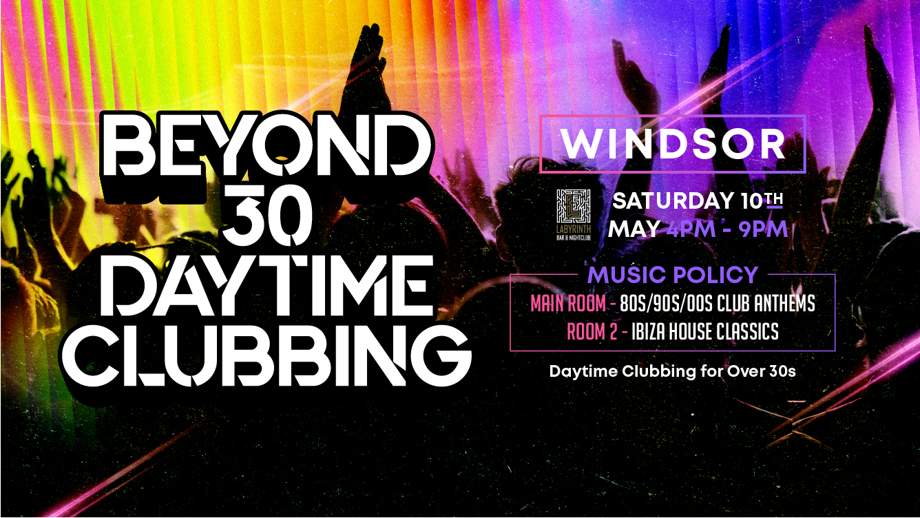 Get ready for a party like no other as Over 30s Daytime Clubbing lands at the iconic Labyrinth, Windsor on 10th May! This is your chance to relive the magic of your clubbing days without sacrificing your beauty sleep.