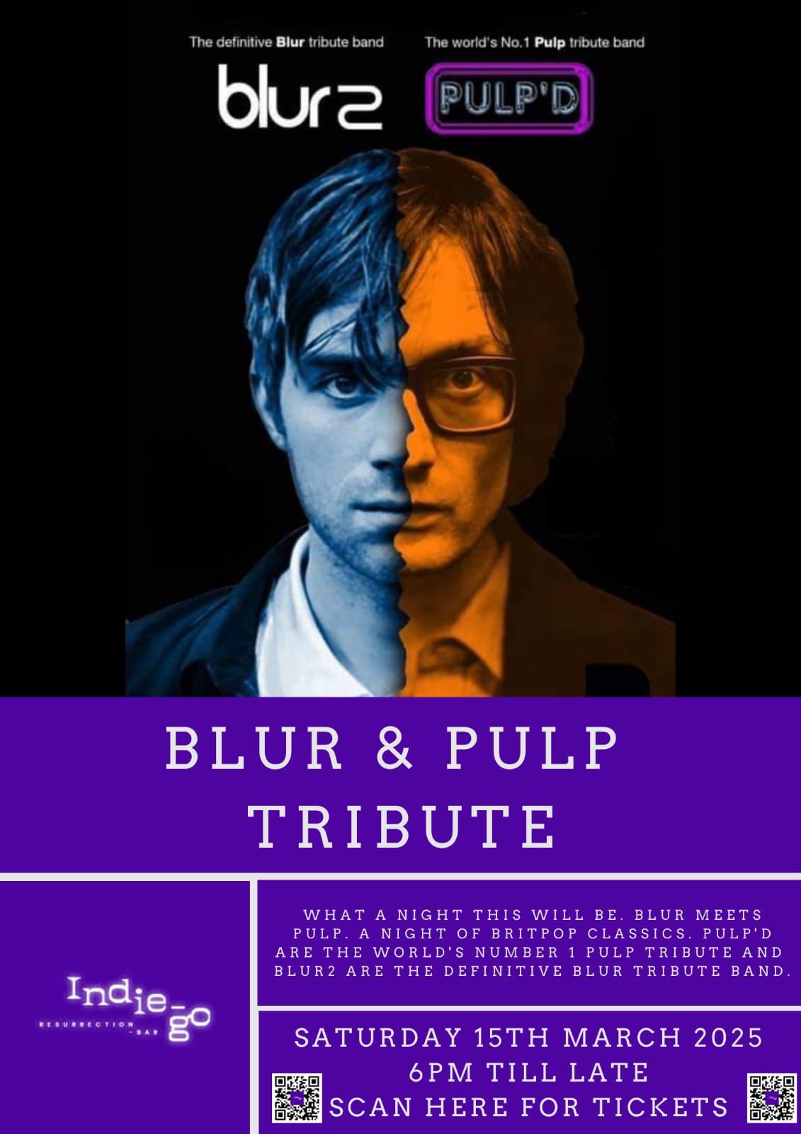 Come and join us for what is sure to be a fantastic night of 2 Britpop heavyweight tributes to Blue and Sheffield favourites, Pulp!