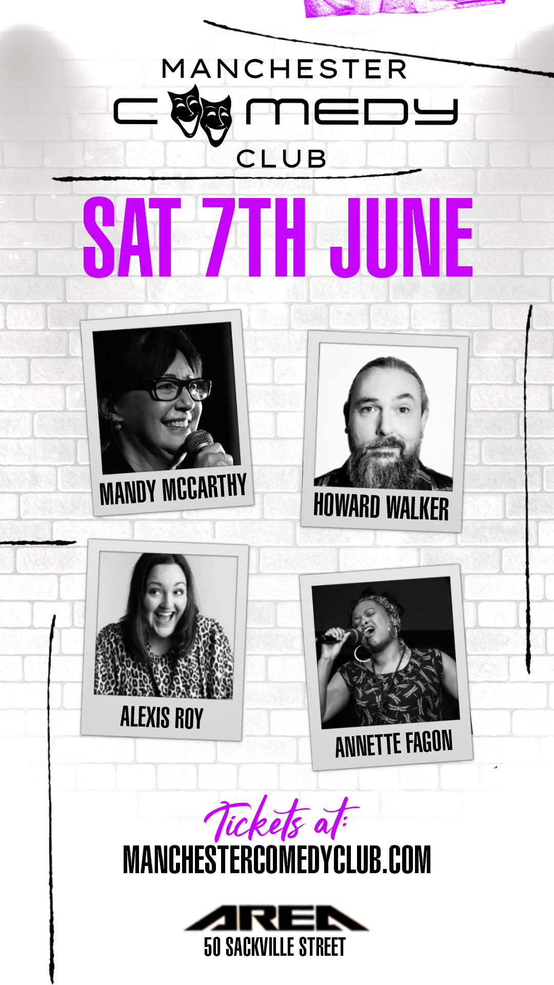Laugh so hard you forget your rent’s due—join us at AREA (50 Sackville Street) on Saturday 7th June. Featuring Mandy McCarthy, Howard Walker, Alexis Roy, and headliner Annette Fagon, it’s the best legal way to feel joy in 2025.