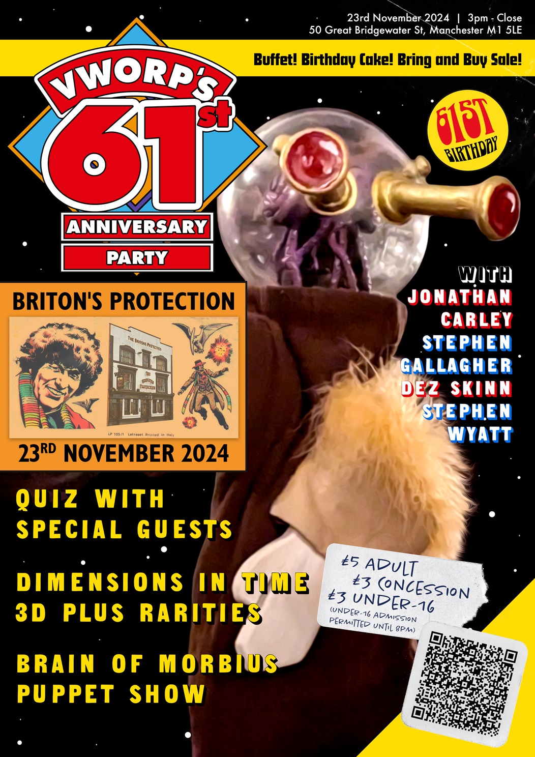 ++ A brand new DOCTOR WHO QUIZ with special prizes from Cutaway Comics' own IAN WINTERTON, including rounds read out by our in-person special guests DWM founding editor (and all round British comics legend) DEZ SKINN, Warriors' Gate and Terminus' and Faustine writer (and Manchester's own) STEPHEN GALLAGHER, Paradise Towers head of visitor amenity and creator of the Greatest Show in the Galaxy (word), STEPHEN GALLAGHER and Big Finish's War Doctor himself, great actor and fine chap JONATHON CARLEY!