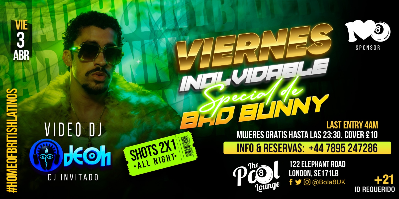 This Friday 3rd April, the energy goes all the way up at Bola 8 with a Bad Bunny Special set to take over the dancefloor 💣