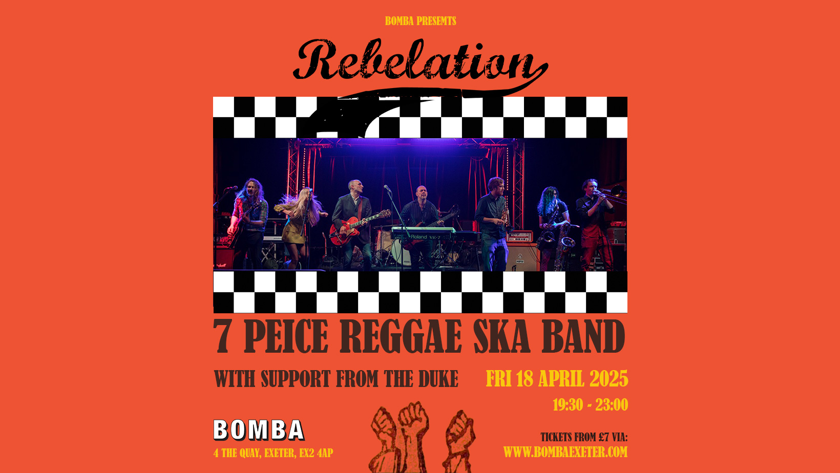 Rebelation are an Internationally renowned reggae ska band. Male and female fronted and influenced by 60’s Jamaican Ska, Rocksteady and 70’s Roots, their sound also carries elements of Soul and Gospel. Having consistently toured throughout the UK and Europe, they're festival regulars with a reputation as an explosive live act, Covering subject matter that deals with social and political challenges, with a vibe of positivity, inclusivity, hope and resolution.