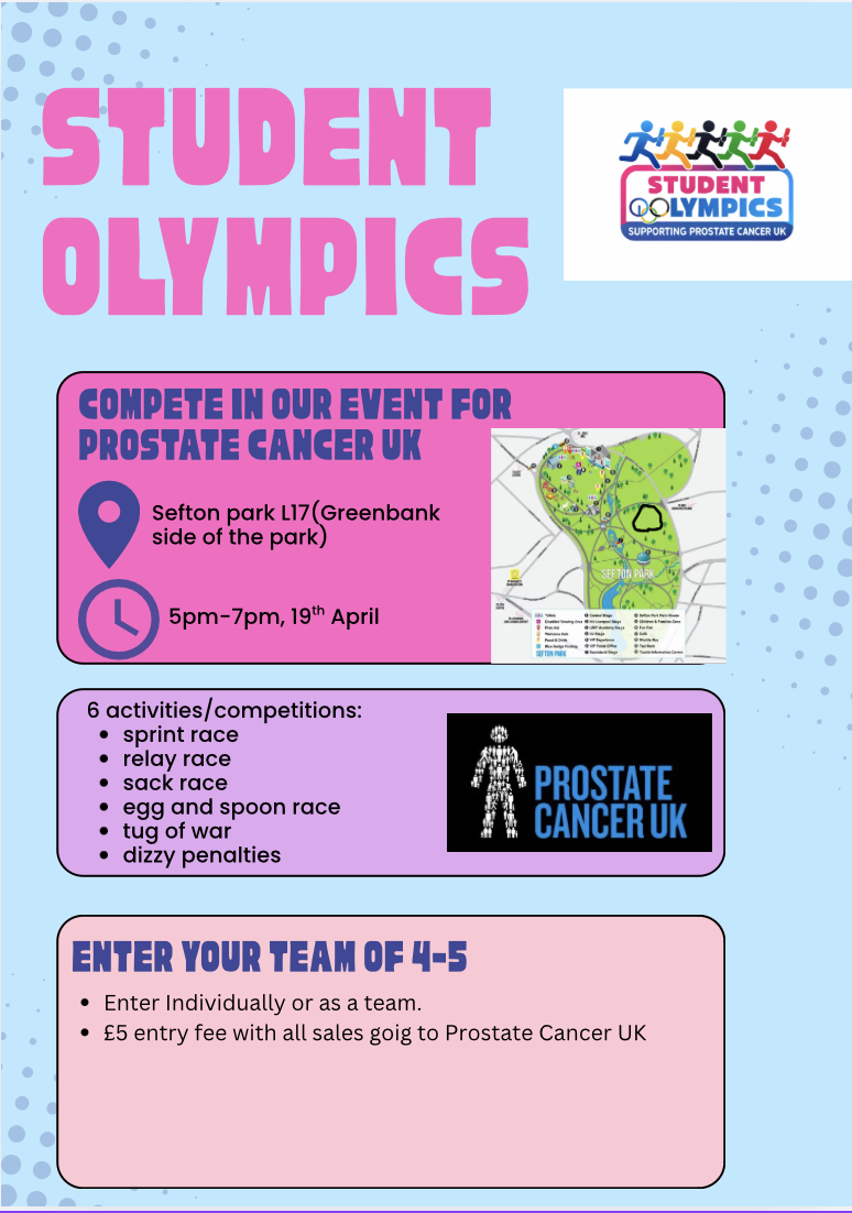 Whether you're in it to win it or just here for the laughs, this event is all about having fun, getting involved, and making the most of student life — all while donations and ticket sales are donated to Prostate Cancer UK.