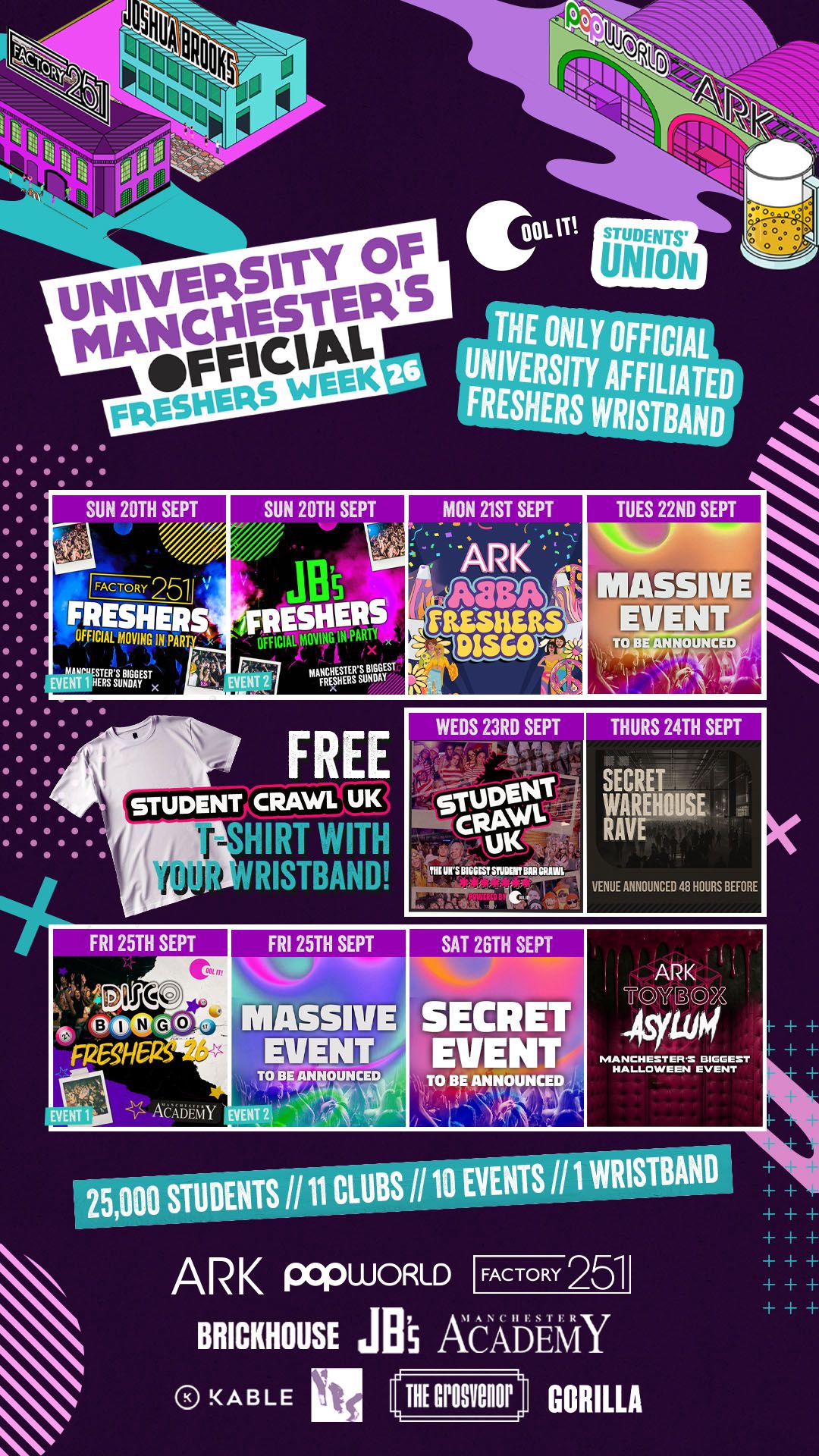 The ONLY OFFICIAL University of Manchester Freshers programme in the City in conjunction with your Students Union AND Manchester's Biggest Events Company COOL IT EVENTS.