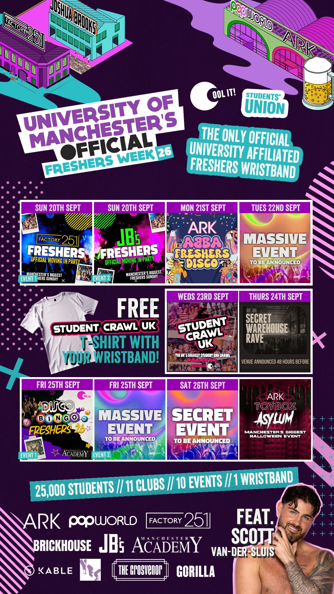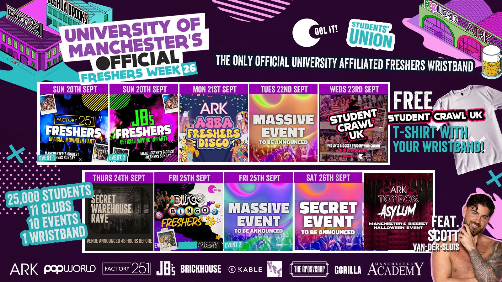 The ONLY OFFICIAL University of Manchester Freshers programme in the City in conjunction with your Students Union AND Manchester's Biggest Events Company COOL IT EVENTS.