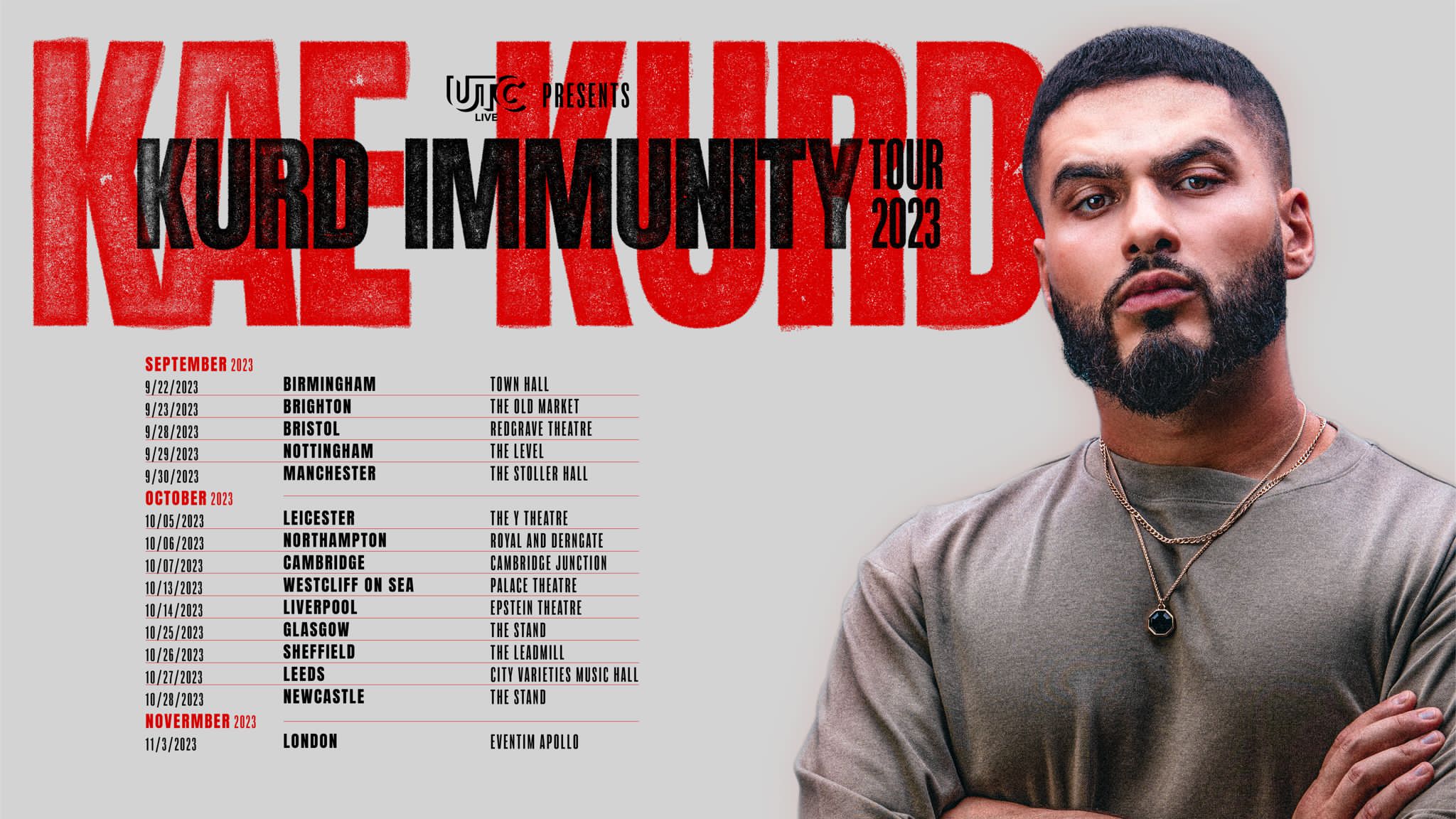 After his sell out debut 2021 national tour The Spoken Kurd, one of the UK’s fastest rising comedy stars returns in 2023 with ‘Kurd Immunity’. Smart, sharp, and brilliantly funny, Kae Kurd is a young British-Kurdish stand up making a serious name for himself.