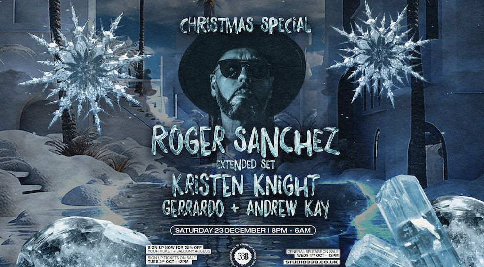The Studio 338 Christmas Special see's world favourite Roger Sanchez plays a very special Extended Set on Saturday 23rd December with Kristen Knight, Gerrado + Andrew Kay.