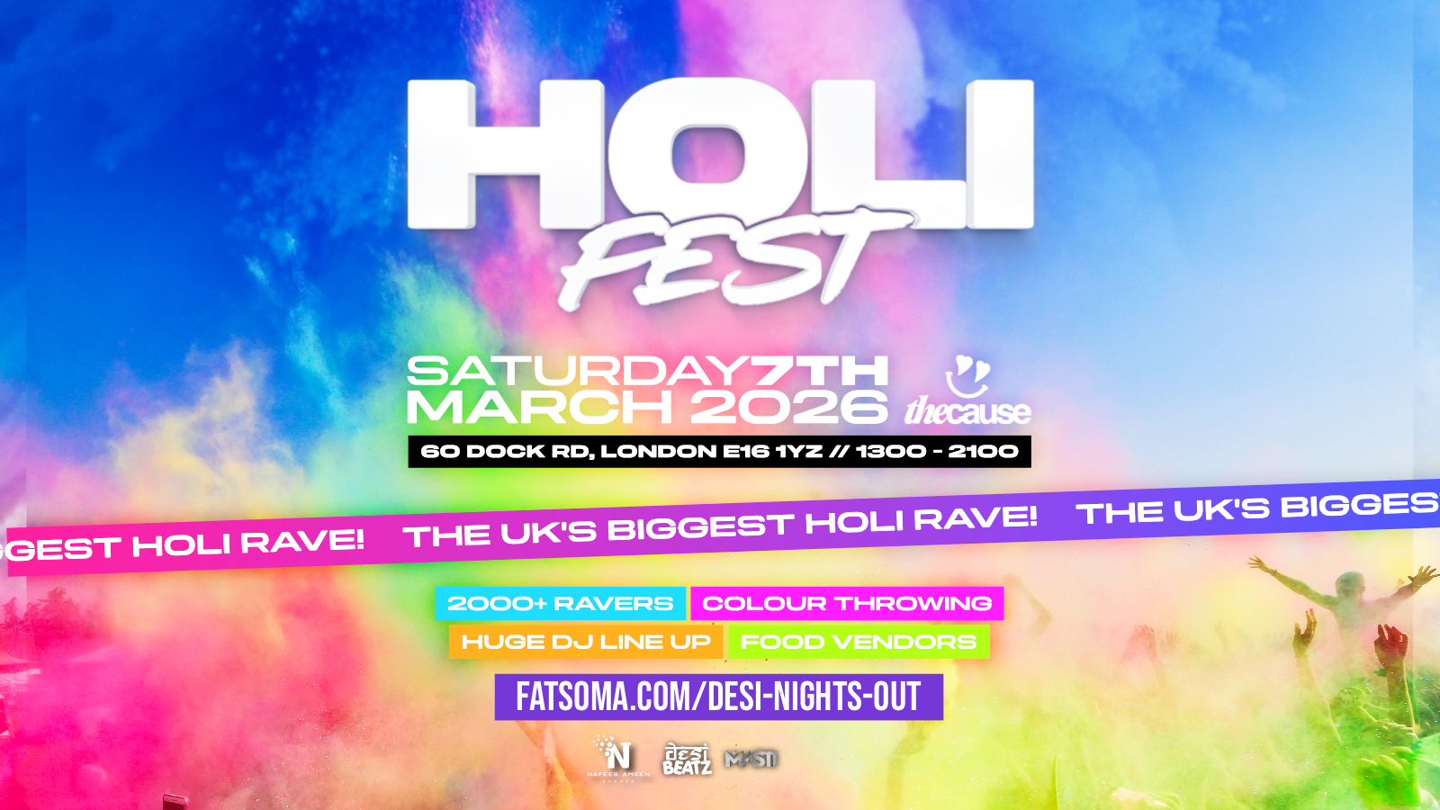 Europe's biggest Desi night out presents the third ever edition of HOLI FEST & we take it to the NEXT LEVEL - the largest outdoor colour throwing festival celebrating the best in South Asian music and culture : THIS WILL BE THE BIGGEST DAY PARTY WE HAVE EVER THROWN!