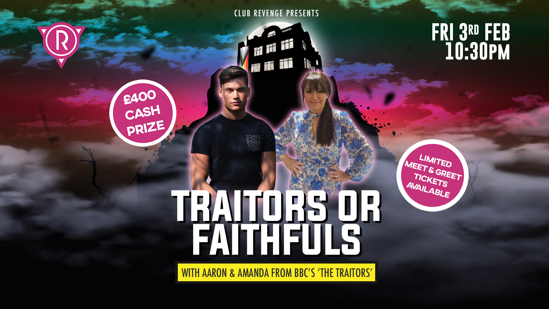 Every person through the door will be assigned the role of either a 'Faithful' or a 'Traitor'. Solve the mystery of who's a traitor or fool your friends to be in with the chance of winning a huge cash prize of up to £400. Bring your detective skills, because this is a night that is full of twists, turns & betrayal.