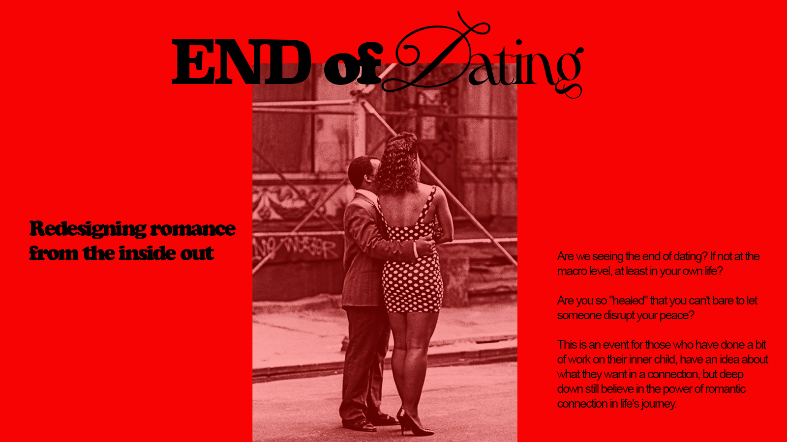 This is an event for those who have done a bit of work on their inner child, have an idea about what they want in a connection, but deep down still believe in the power of romantic connection in life's journey.